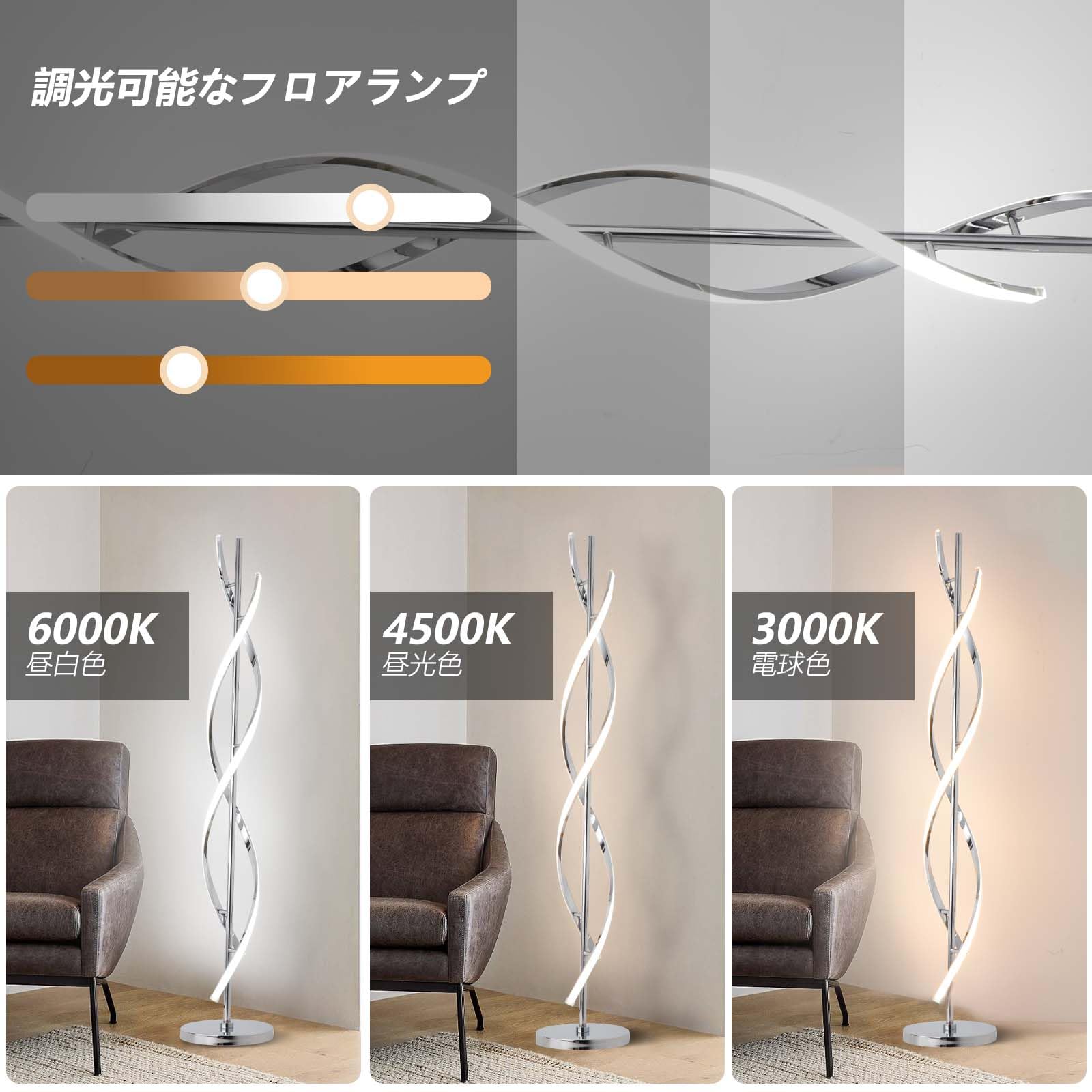 フロアライト おしゃれ 北欧 LED スタンドライト フロア スタンド らせん式フロアランプ リモコン付き 無段階調光調色 間接照明 リビング 勉強 仕事 読書適用 和風 和室 床置き 玄関 寝室 居間用 目に優しい 常夜灯 省エネ 高輝度 (White)