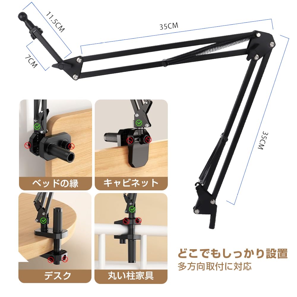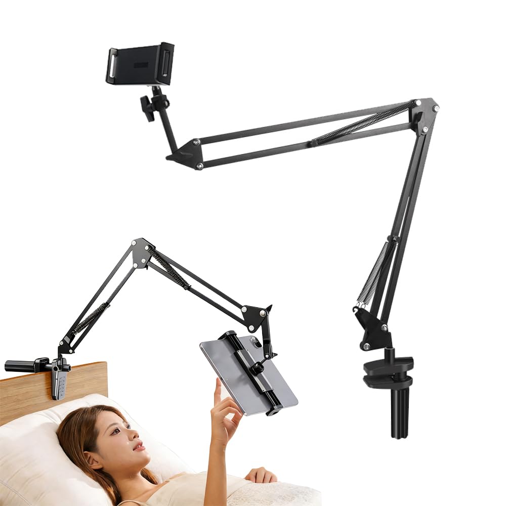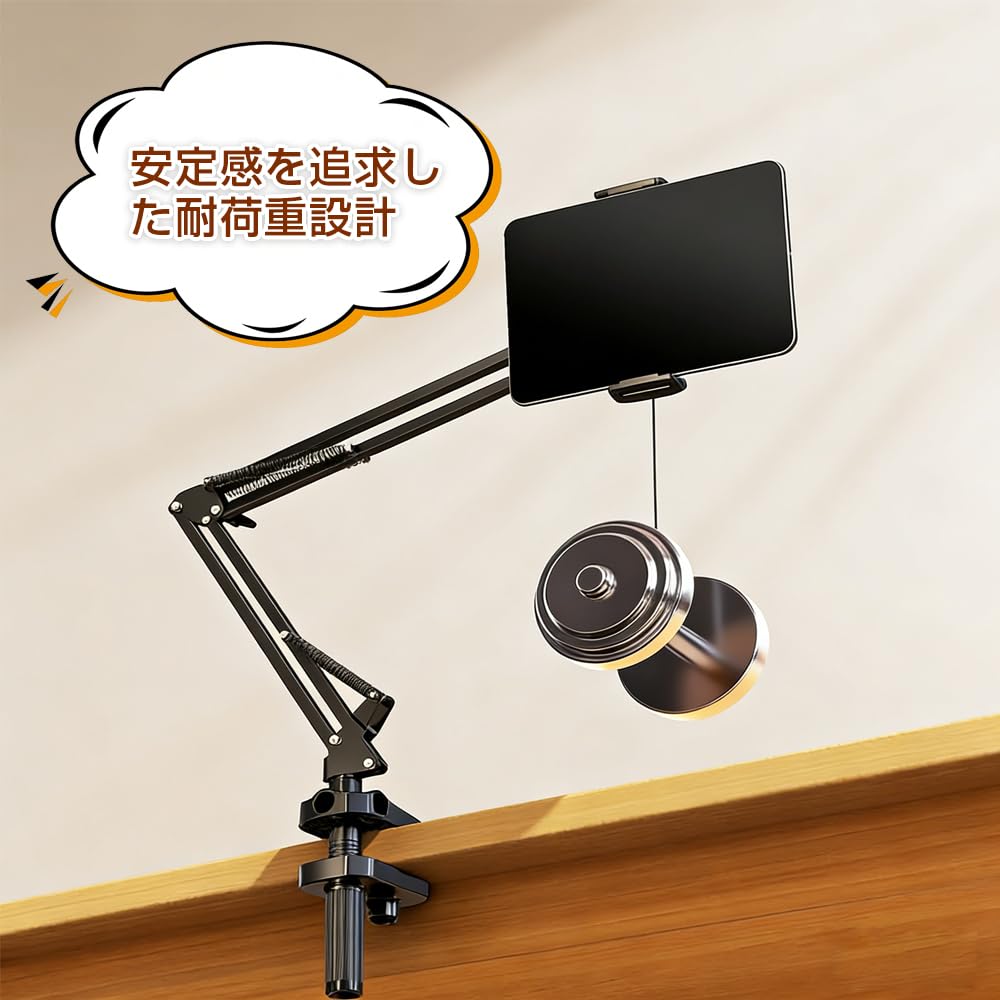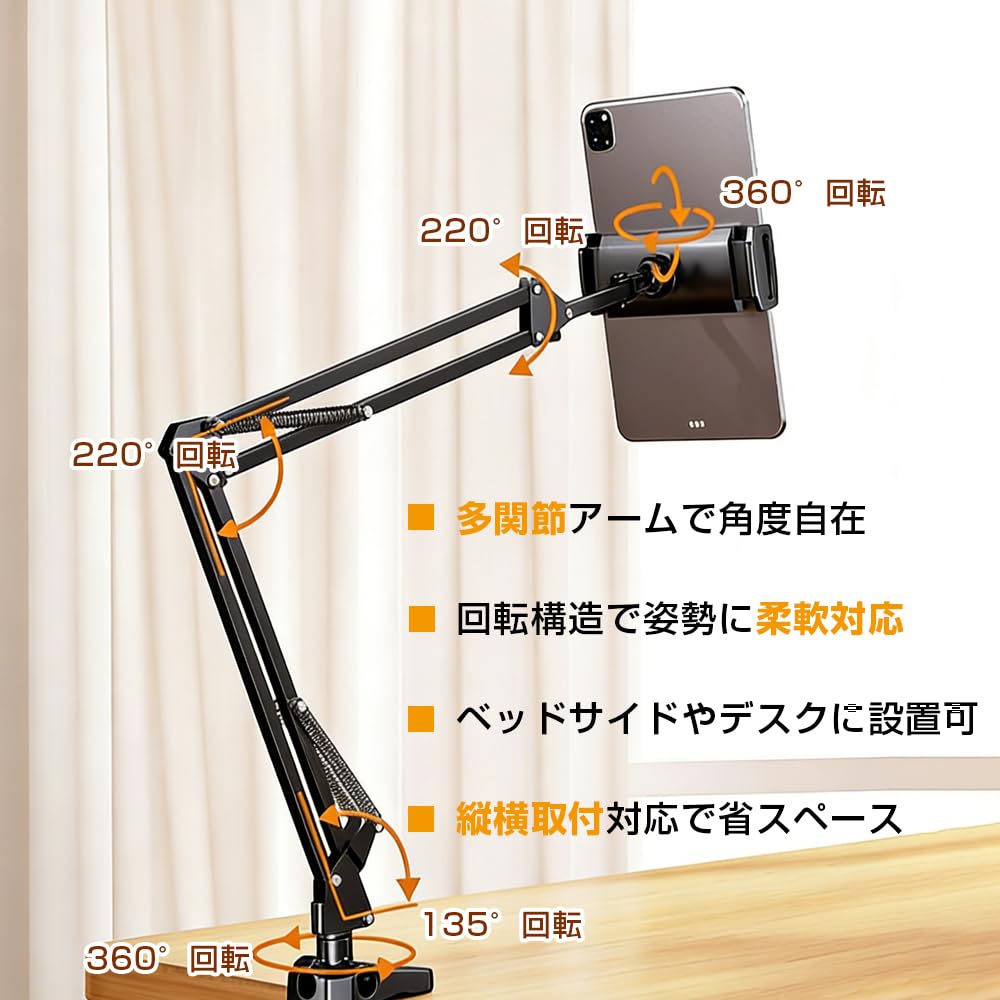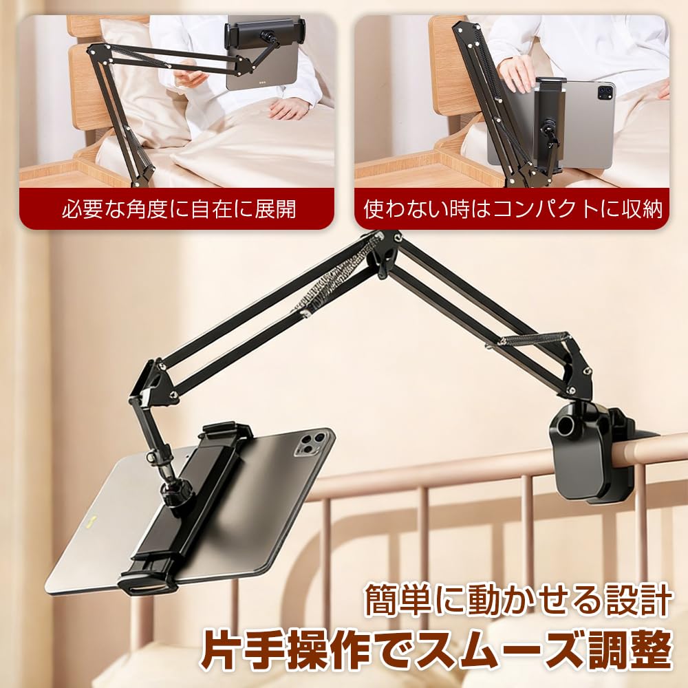 JetWave タブレット スマホ アームスタンド ベッド取付 寝ながら使用 卓上対応 Z型アーム 360回転 4関節 自由角度調整 折りたたみ 安定設計 多機種対応 4.7 12.9インチ ブラック