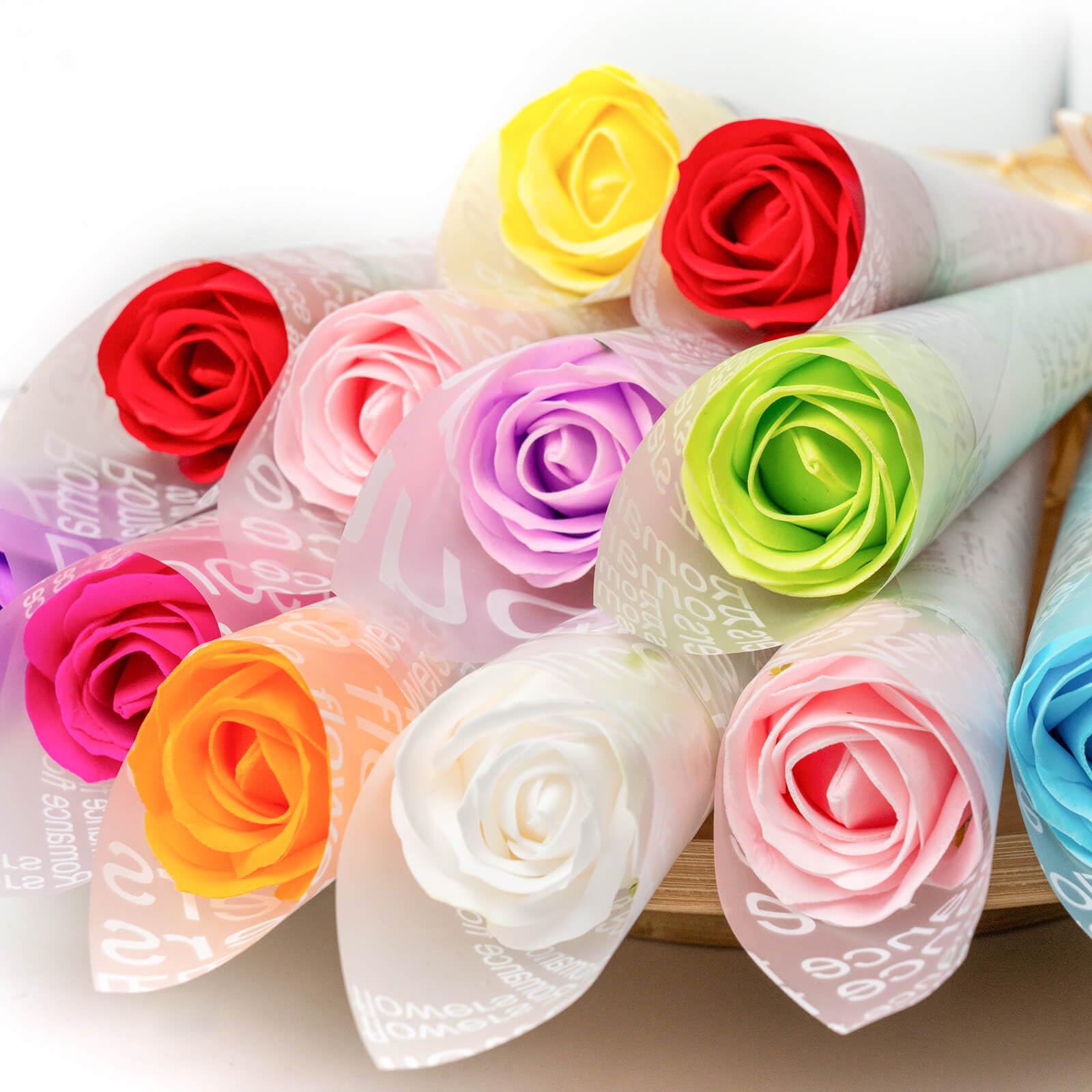 Epicpetal 12色 ソープフラワー 花束 1輪 一輪 バラ 造花 フラワーソープ 枯れない花 卒業祝い 誕生日 母の日 父の日 敬老の日 開店祝い 退職祝い 送別会 プレゼント 女性 人気 花 ギフト セット (12, マルチカラー)