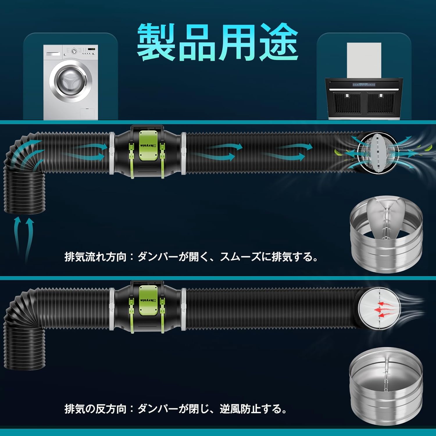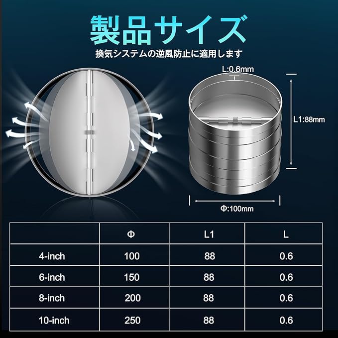 Okryain 逆風防止ダンパー 硬度強化型 チャッキダンパー 逆止弁 逆流防止弁 単方向防塵換気 換気口 換気システム気流制御 ステンレス製 逆流シャッター 換気扇ダクト接続用 (4inch/100mm)