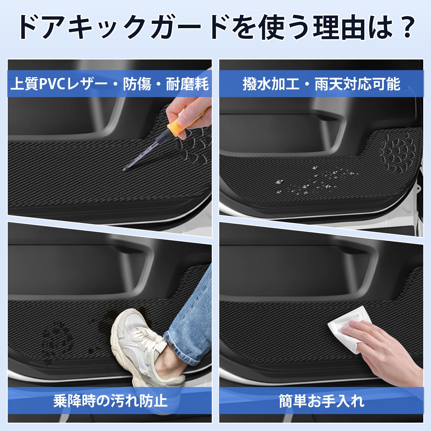 Cartist ホンダ 新型N-BOX JF5 JF6 ドアキックガード ドアトリムガード ドアプロテクター ドア保護 新型エヌボックス NBOX 2023年10月~現行 車種専用設計 ドアトリムカバー PUレザー 汚れ防止 キズ防止 蹴り防止 内装パーツ 4PCSセット(ブラック)