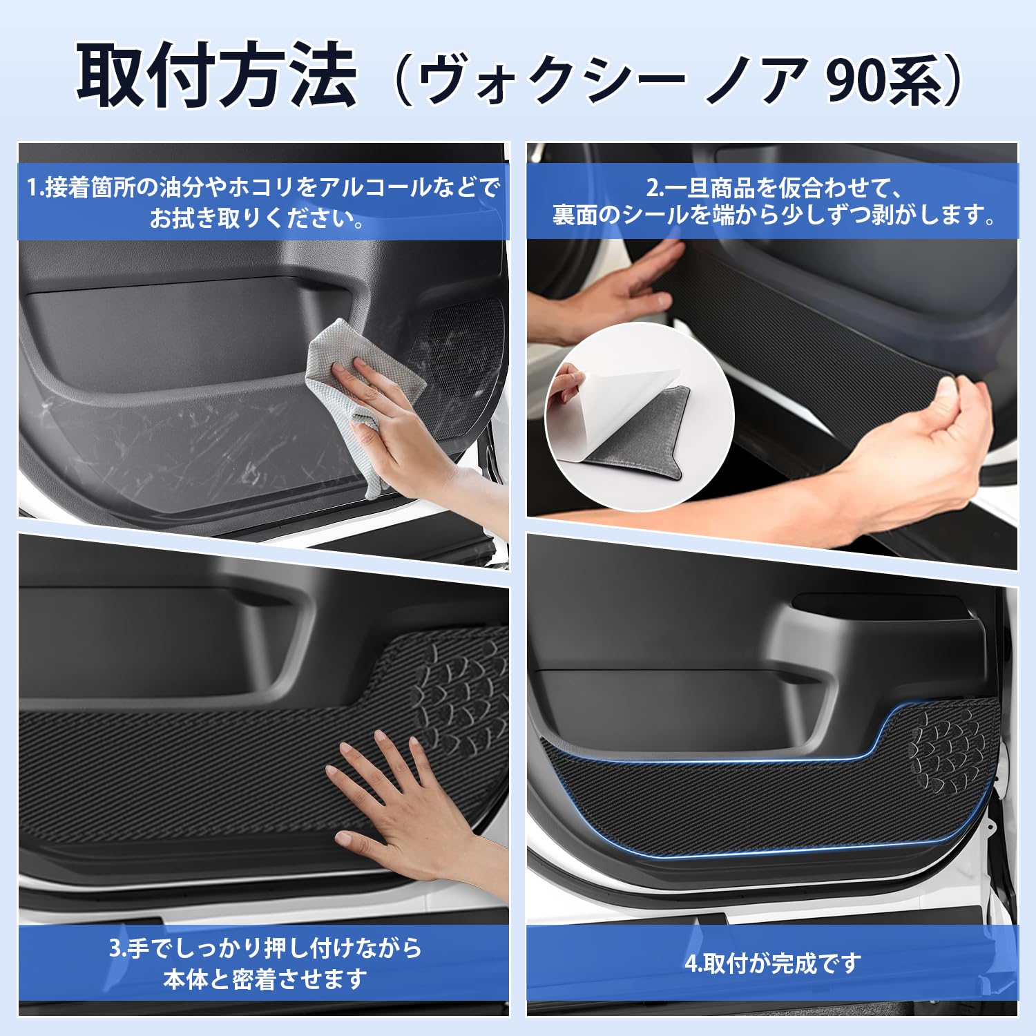 Cartist トヨタ 新型 ヴォクシー ノア 90系 ドアキックガード ドアトリムガード ドアプロテクター ドア保護 NOAH90 VOXY90 車種専用設計 ドアトリムカバー PUレザー 汚れ防止 キズ防止 蹴り防止 フロント用 内装パーツ 2PCSセット(カーボン調)