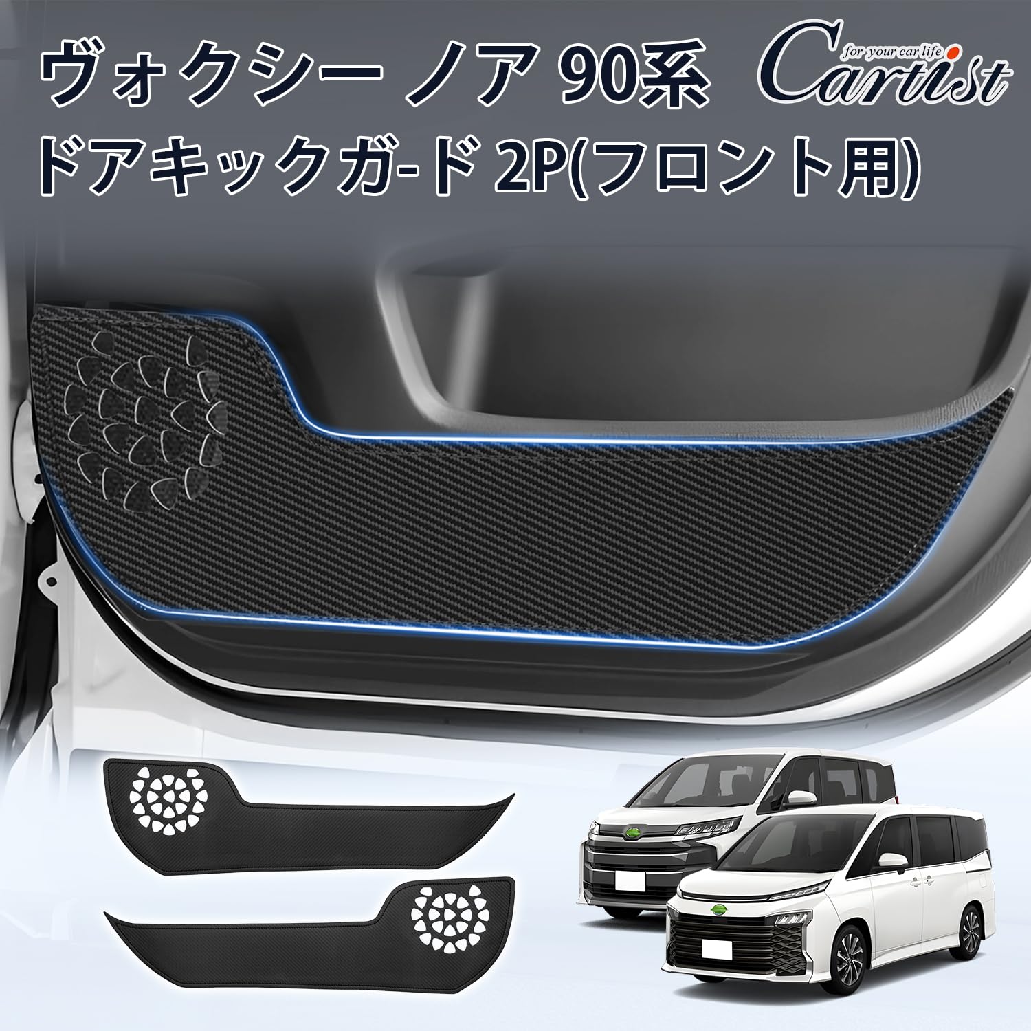 Cartist 新型 ヴォクシー90系 ノア90系 に適用 ドアキックガード ドアトリムガード ドアプロテクター ドア保護 VOXY90 NOAH90 90系 2022年1月-現行 カスタム 車種専用設計 ドアトリムカバー PVCレザー 汚れ防止 キズ防止 蹴り防止 フロント用 運転席用 助手席用 内装パーツ アクセサリー 2PCSセット(カーボン調)