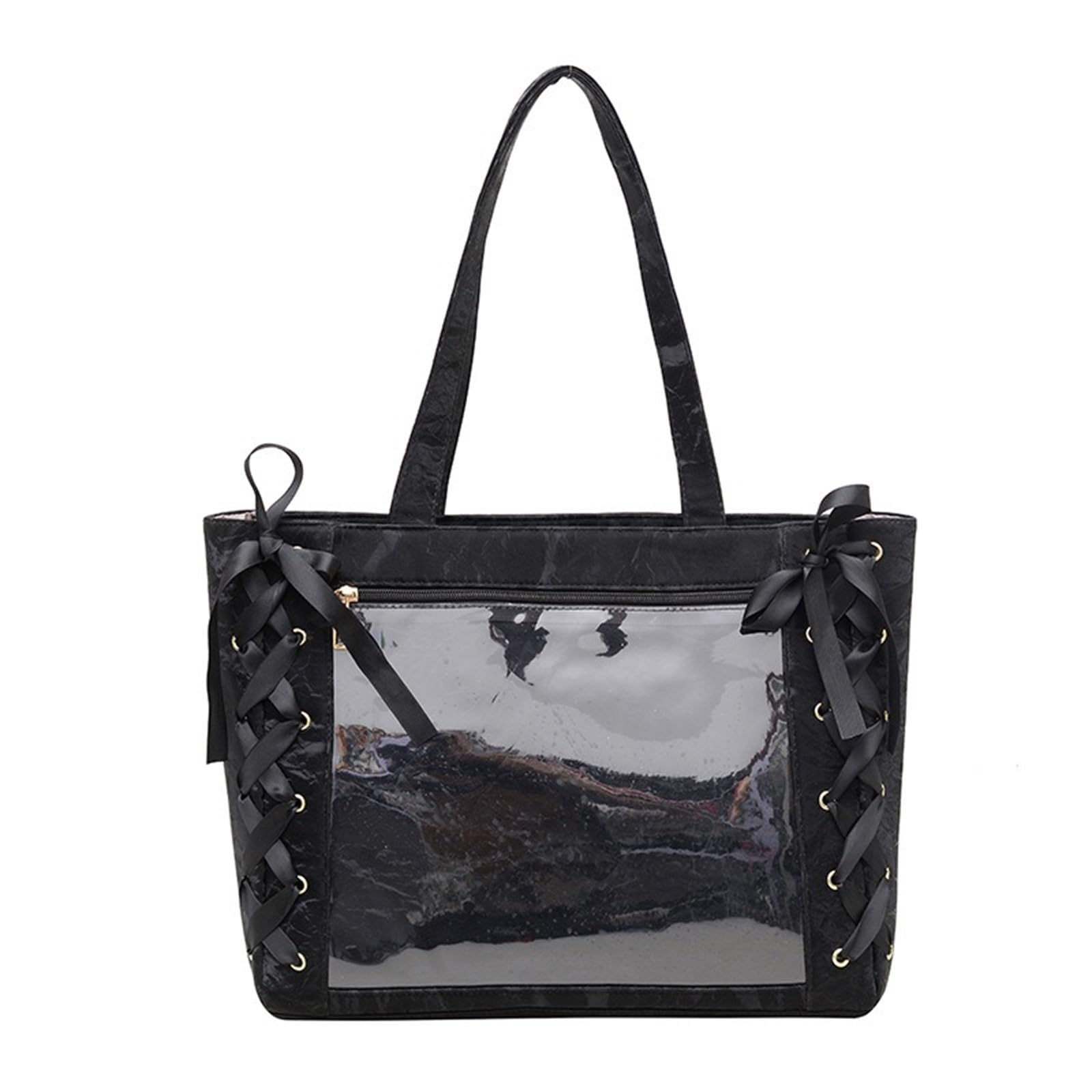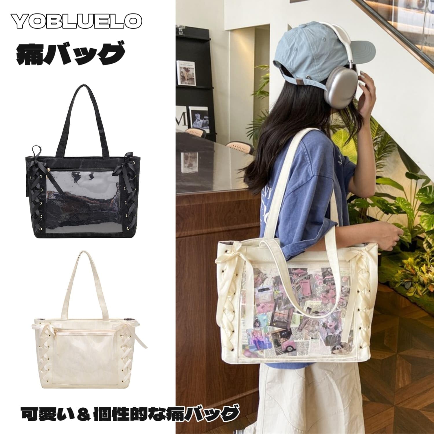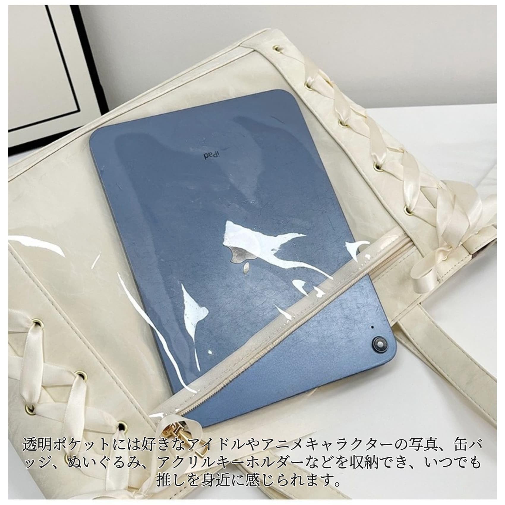 [YOBLUELO] 痛バッグ 痛バ ショルダー レースアップ トートバッグ デコバッグ A4 推し活 クリアバッグ レディース リボン飾り付き