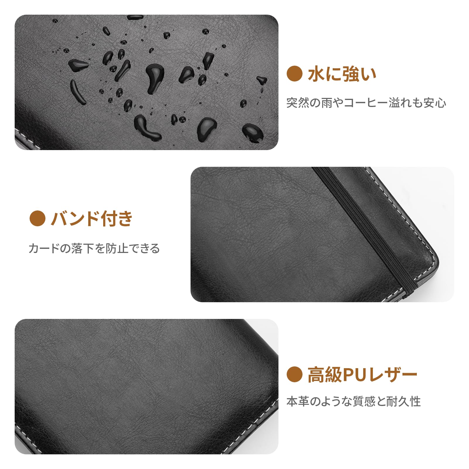 [OWLKELA] 名刺ホルダー 大容量300枚収納 名刺ファイル バンドつき ビジネス用 コンパクトな名刺入れ めいし分類管理・整理 シンプル おしゃれ 男女兼用 携帯便利 (ブラック)