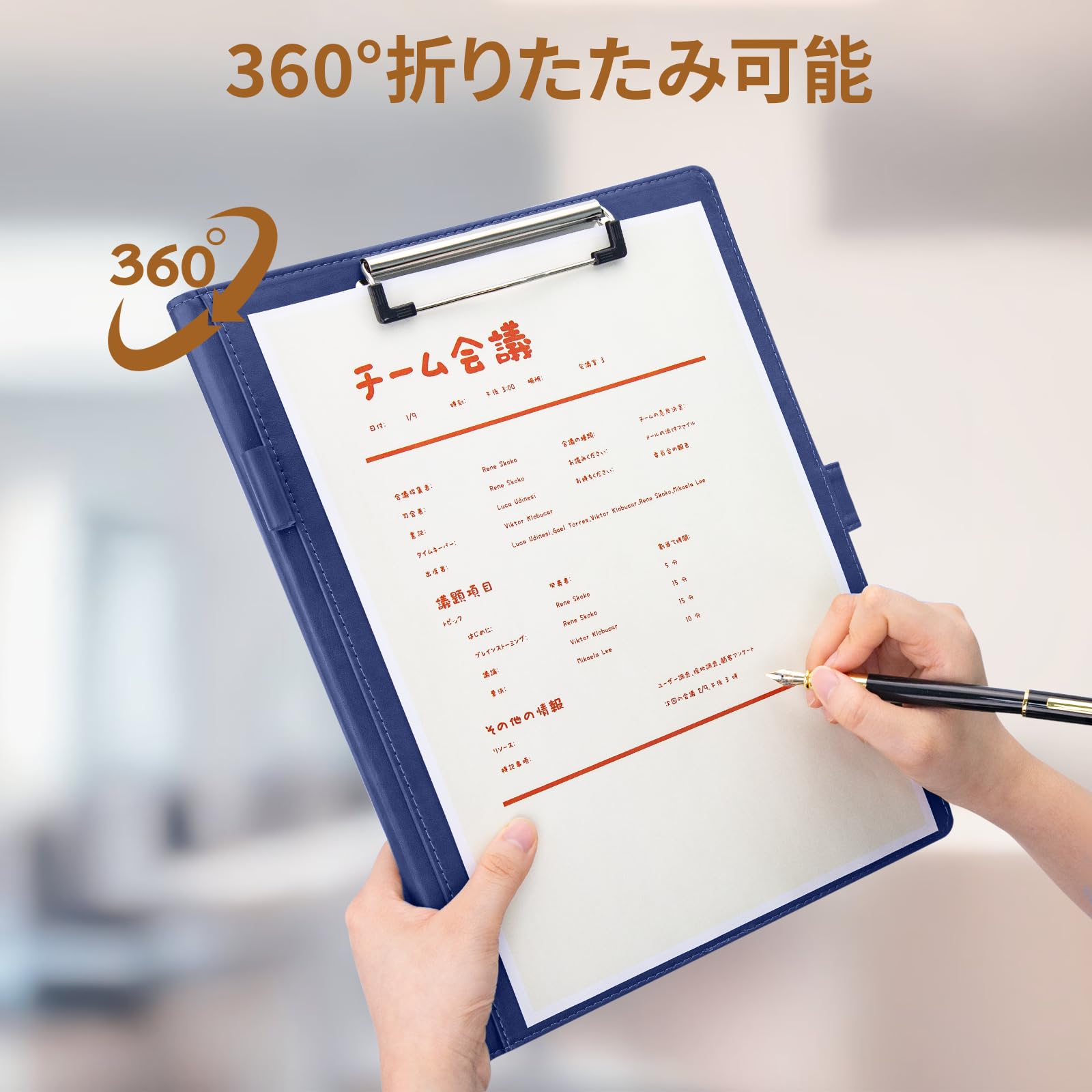 FRETONBA クリップボードフォルダ a4 バインダー 二つ折り ダブルクリップ 1.8mm厚板 書きやすさ 薄型 会議パッド 防水ファイル保護 折り畳み式 ティーチング用 書類ホルダー おしゃれ 軽量 ブルー
