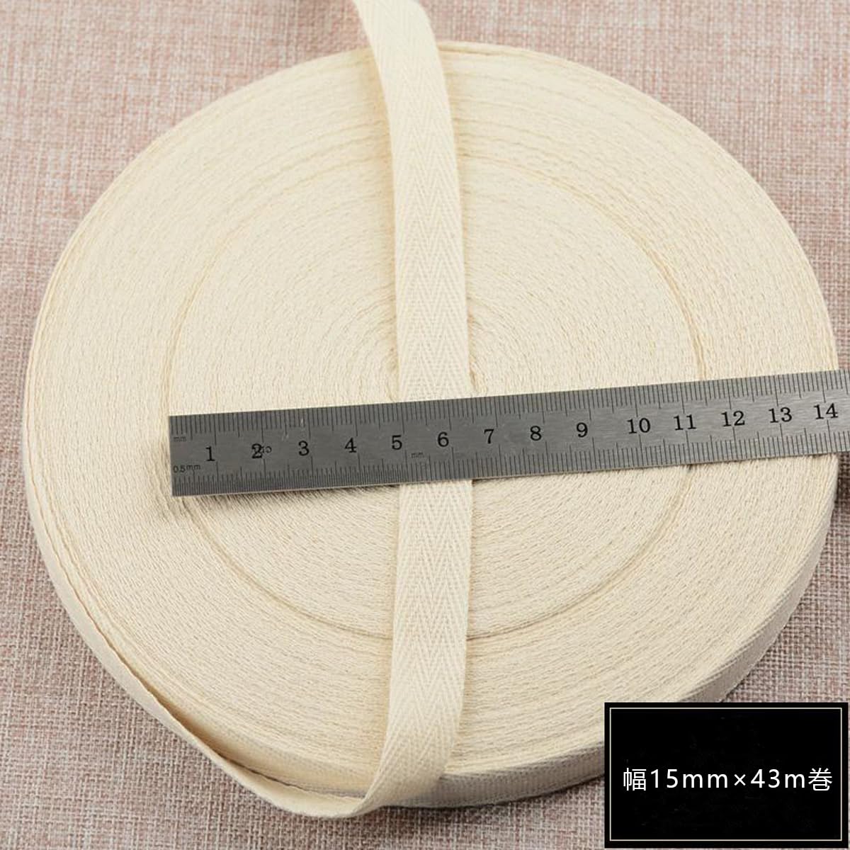 Jeavdarn 綾テープ (綿100%) 幅15mm×43m巻 平紐 綿テープ 手芸 アクセサリーパーツ (生成り)