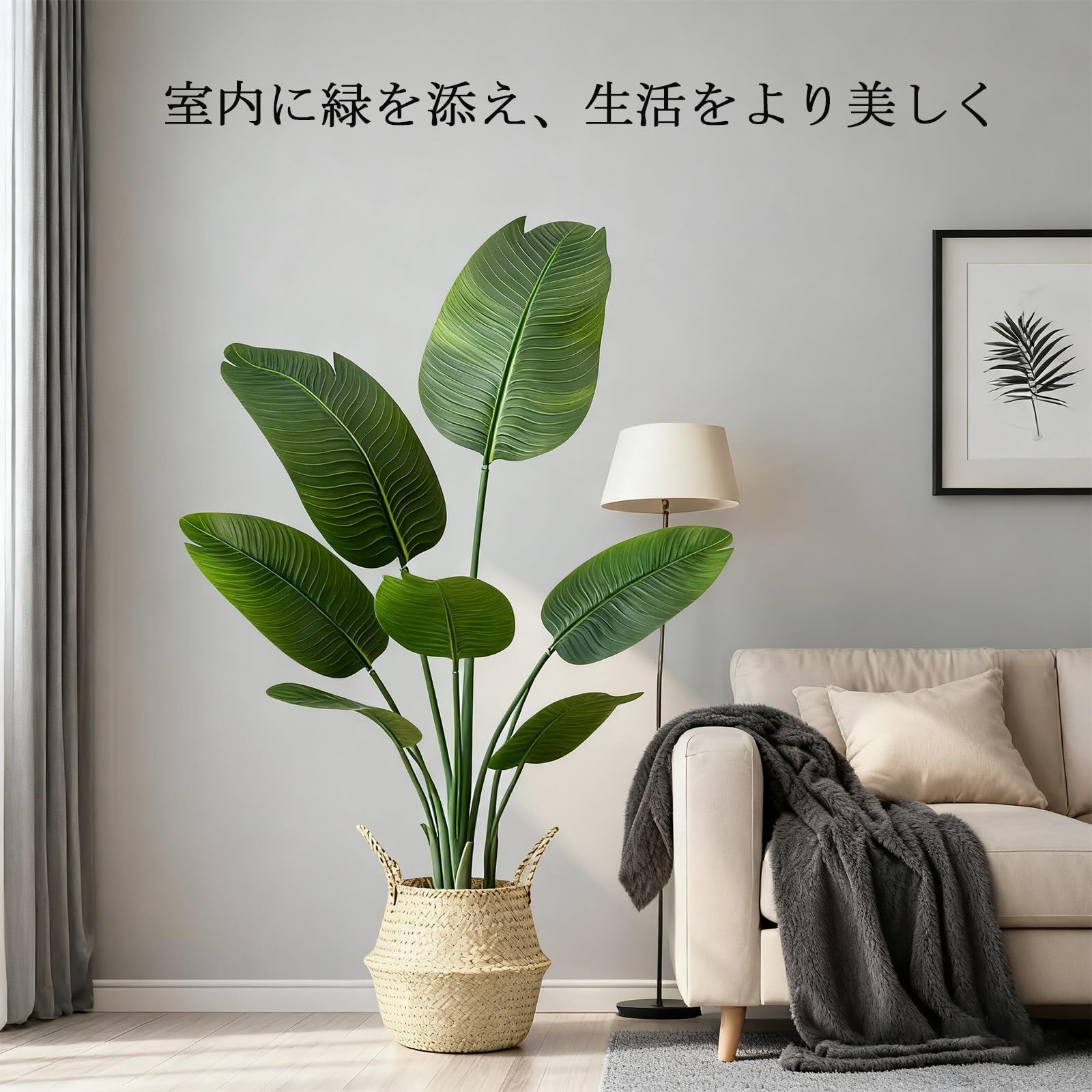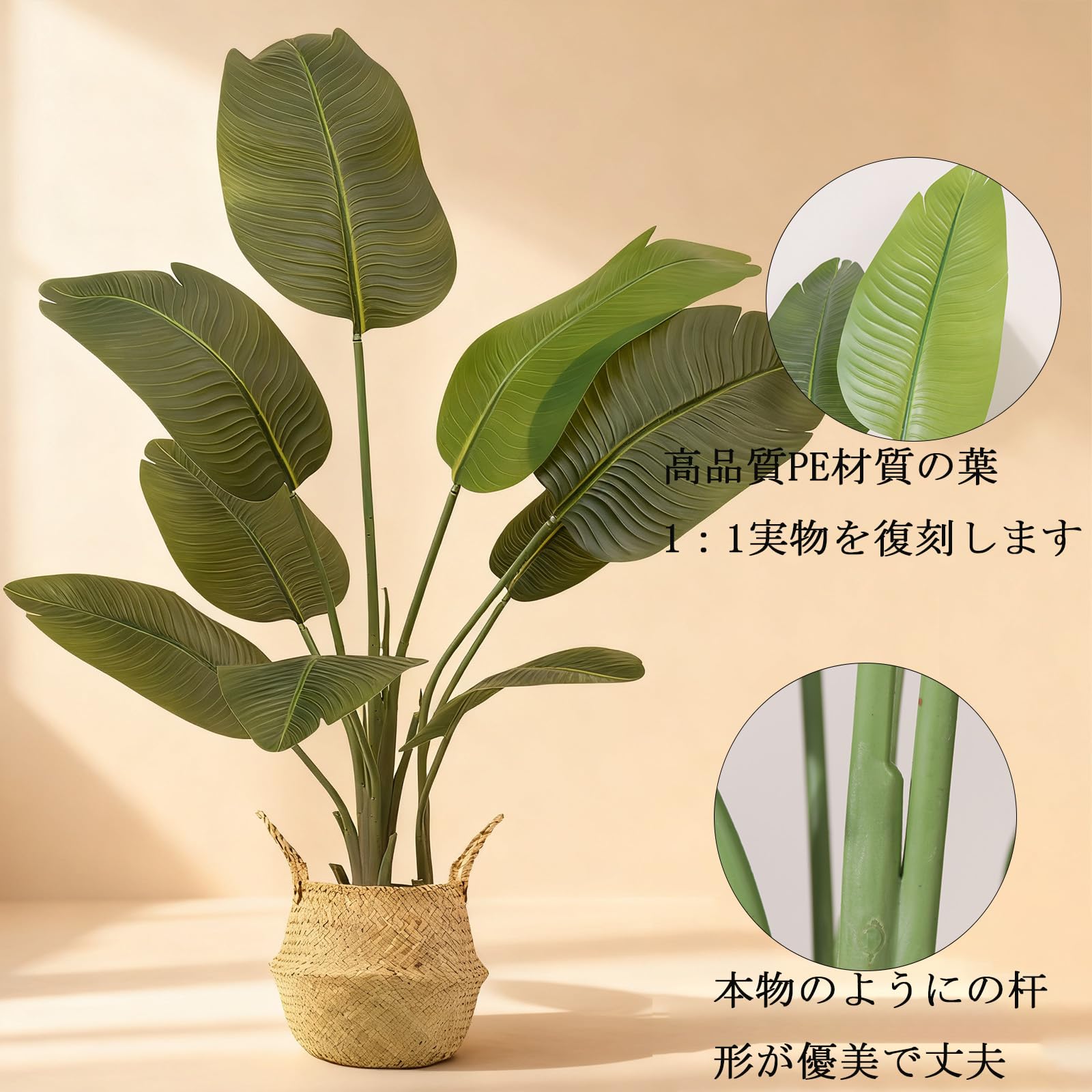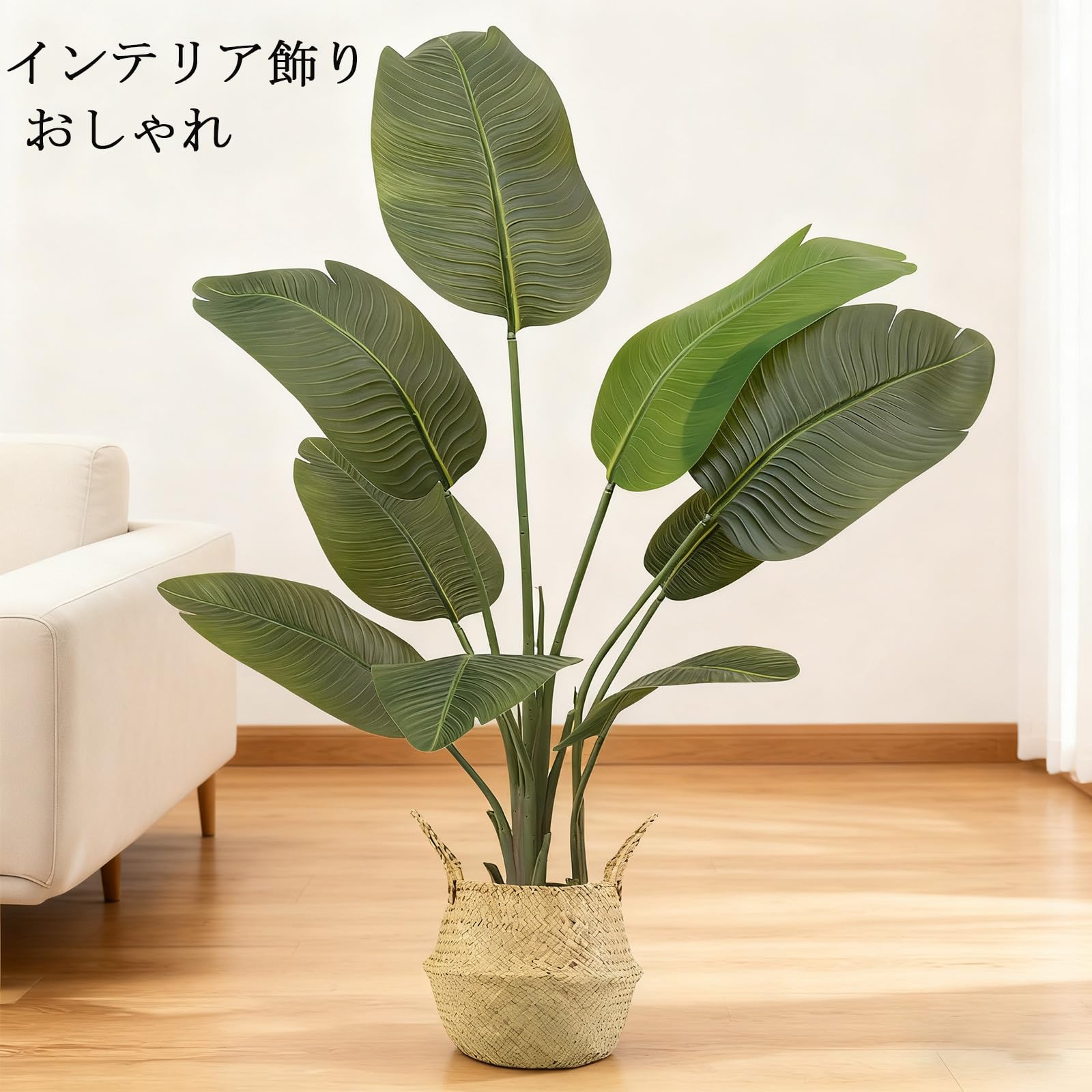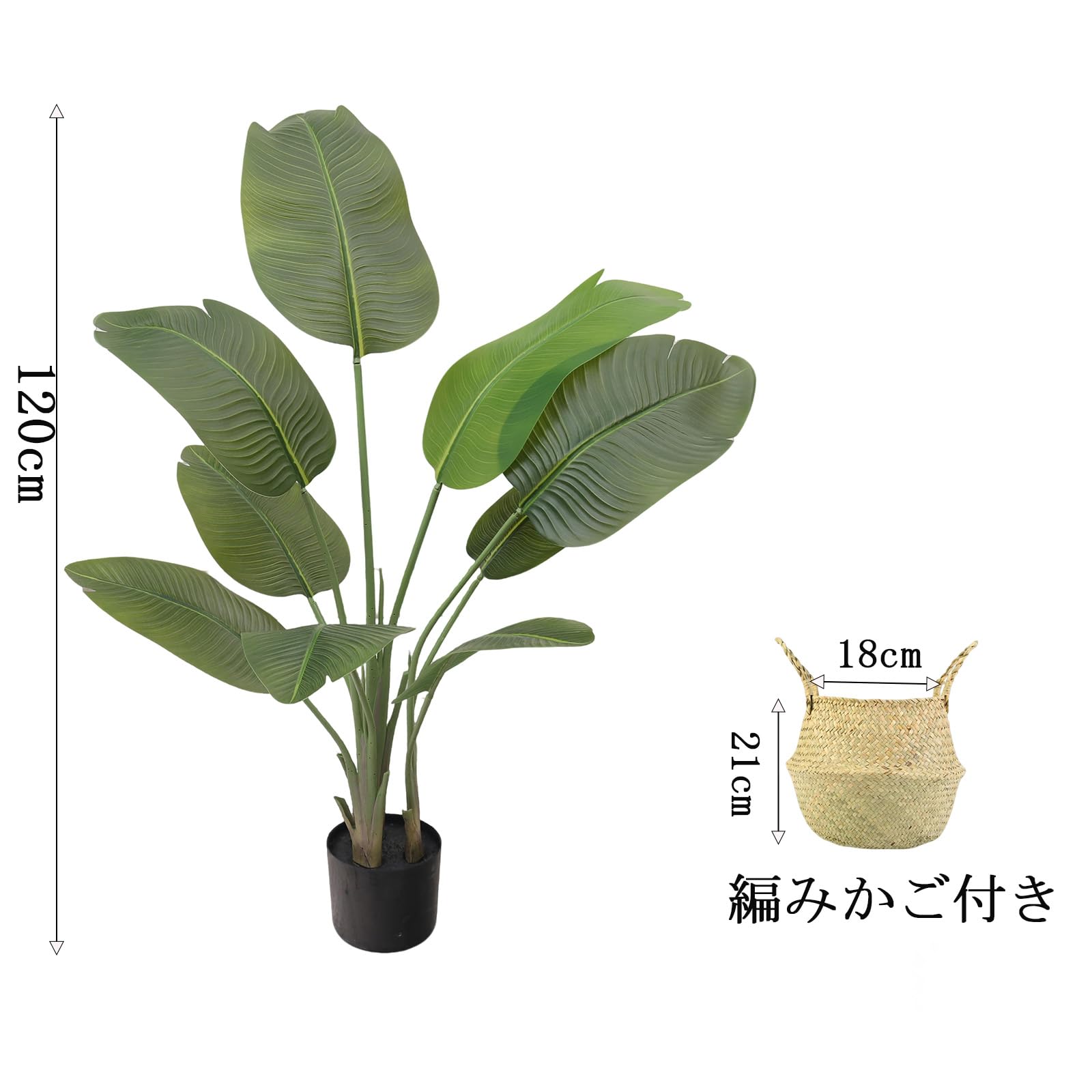 Vixplorn 観葉植物 旅人の木 フェイクグリーン 高さ約120cm 9枚の葉 大型人工観葉植物 鉢&編みかご付き おしゃれ インテリア飾り 室内 リビング オフィス キッチン 飾り用 新年プレゼント