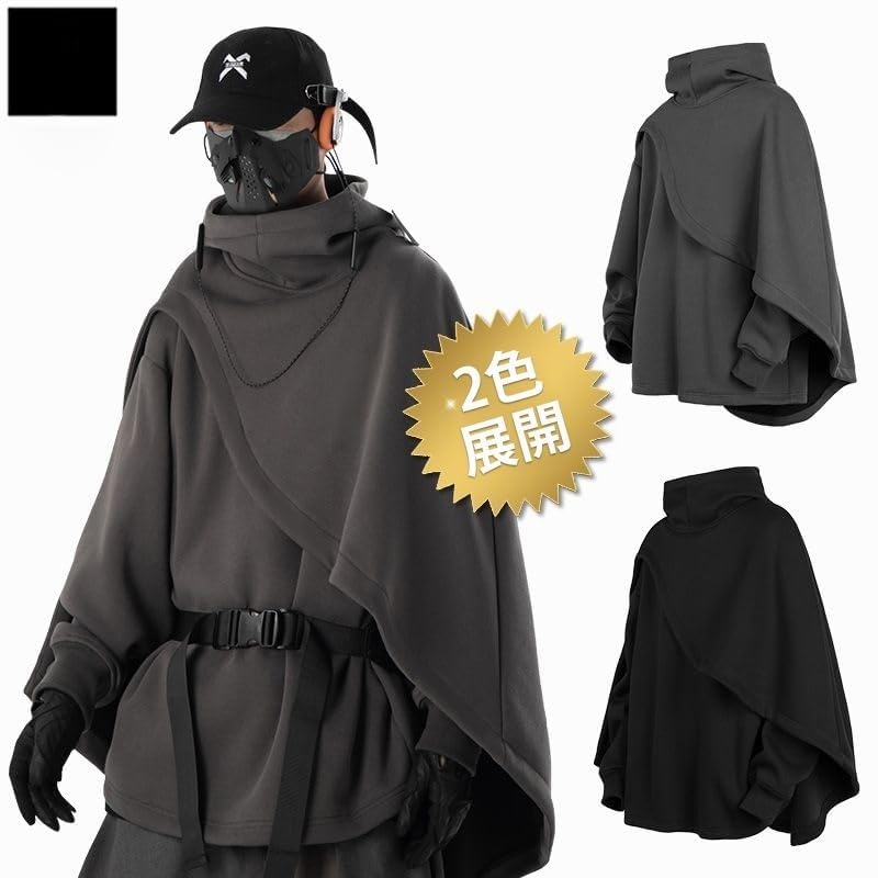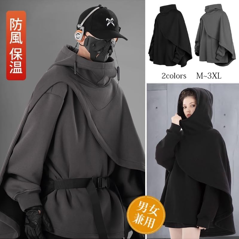 [Firmiarii] マント パーカー メンズ ポンチョパーカー フード付き 秋服 冬服 マント風コート ゆったり アウター 裏起毛 厚手 防寒 スウェット 魔法マント 機能的なパーカー ドルマン ビッグシルエット カジュアル ストリート系 大きいサイズ
