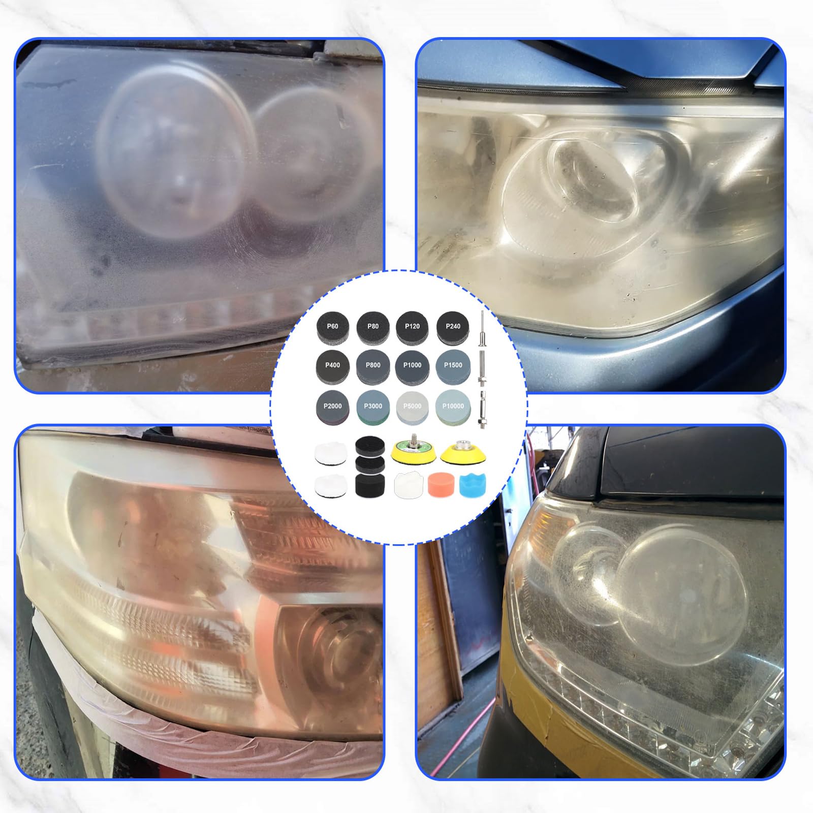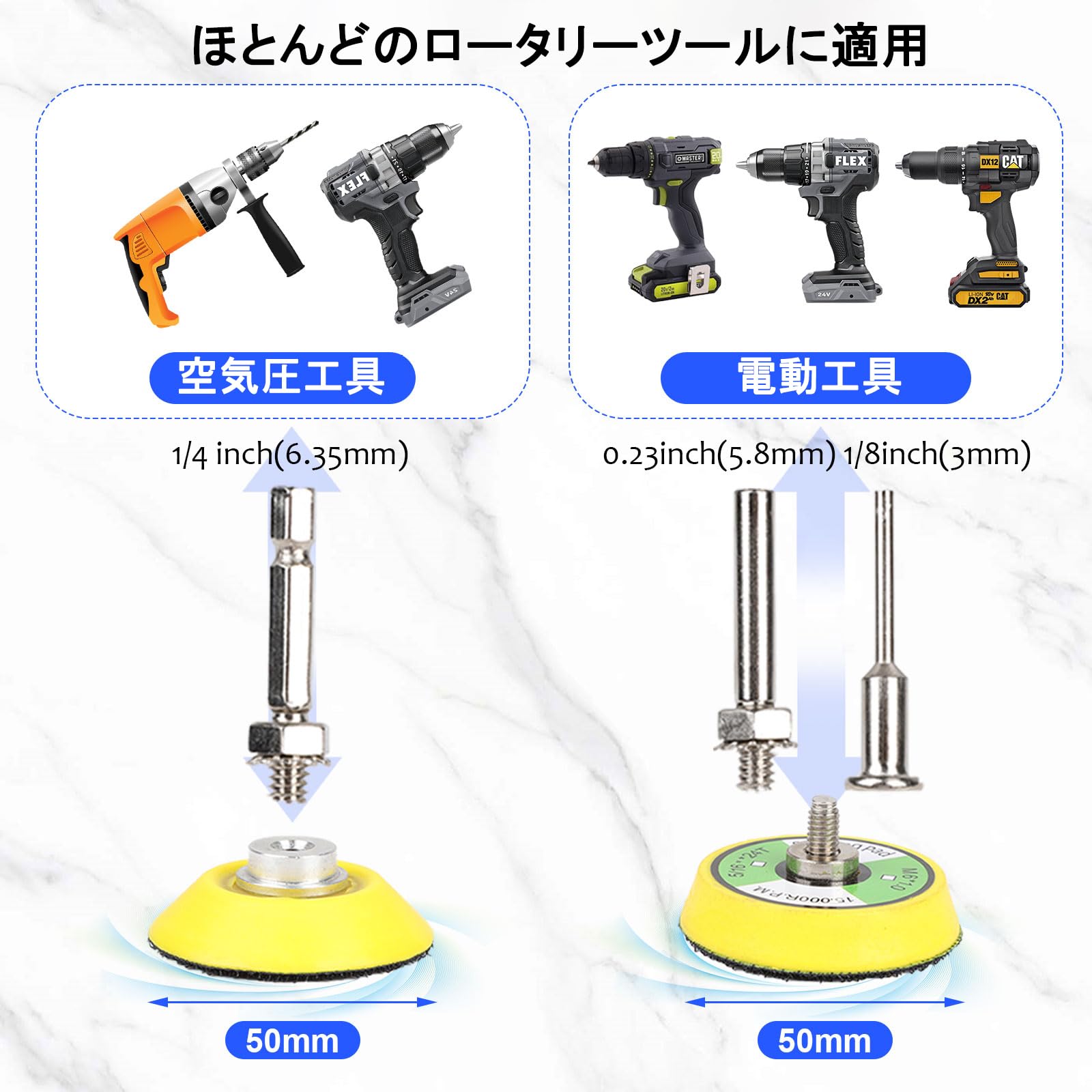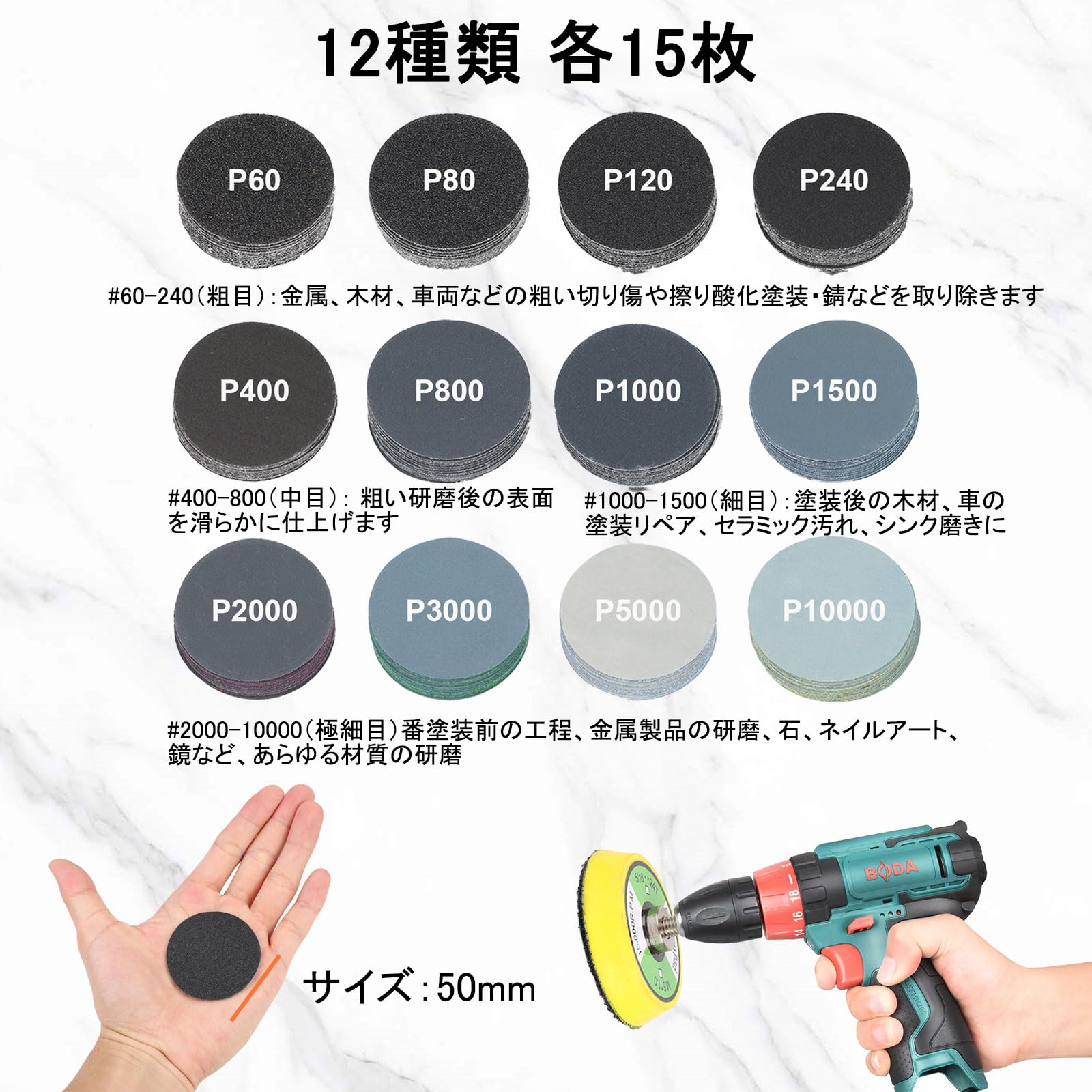耐水サンドペーパーセット 50mm 193枚 研磨パッド&スポンジ付き 耐水ペーパー #60~#10000 丸型 マジック式 6.35mm&6mmシャンク対応 六角電動ドライバー 小型電動工具用 サンディングディスク 車の研磨 木工 DIY 作業に (12種類60/80/120/240/400/800/1000/1500/2000/3000/5000/10000番各15枚)