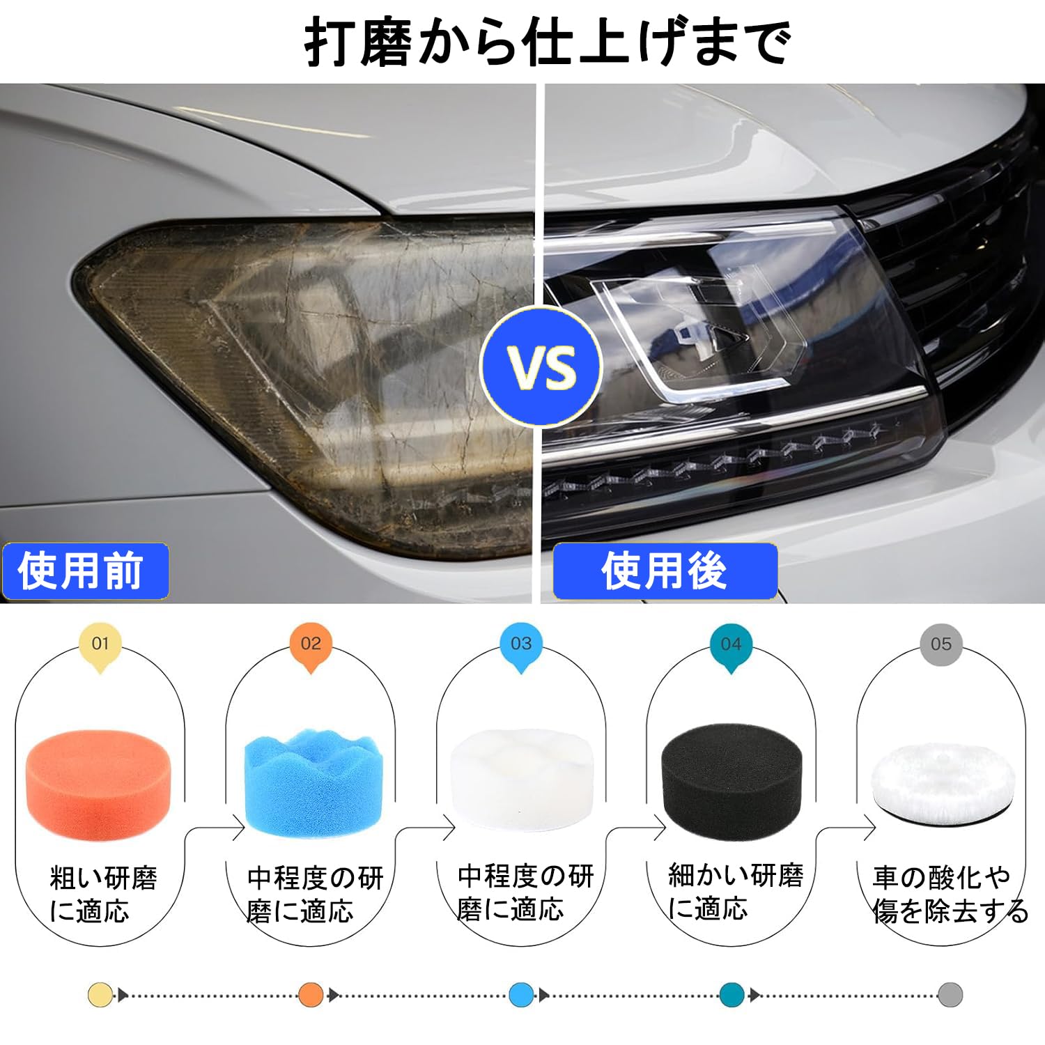 HWXINIE 耐水ペーパー セット 125mm サンディングディスク #120~3000番 9種類90枚入 ランダムサンダー ペーパー 8穴 丸型 マジック式 サンディングペーパー 鏡面磨き ヘッドライトの研磨 木工DIY作業に(#120#240#400#600#800#1000#1500#2000#3000 ×各10枚)