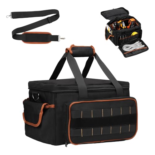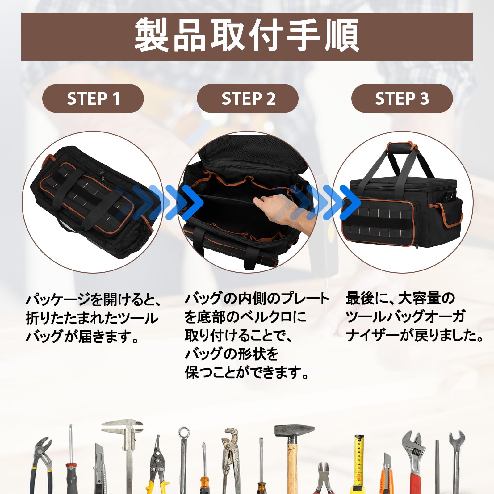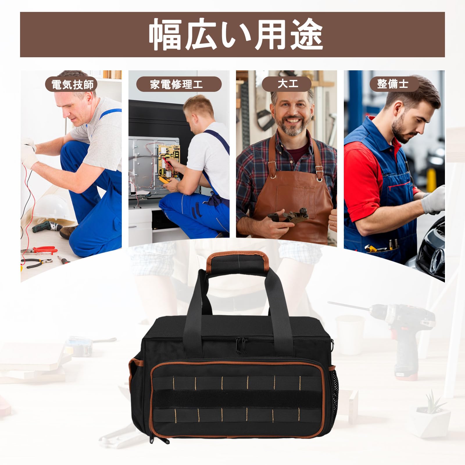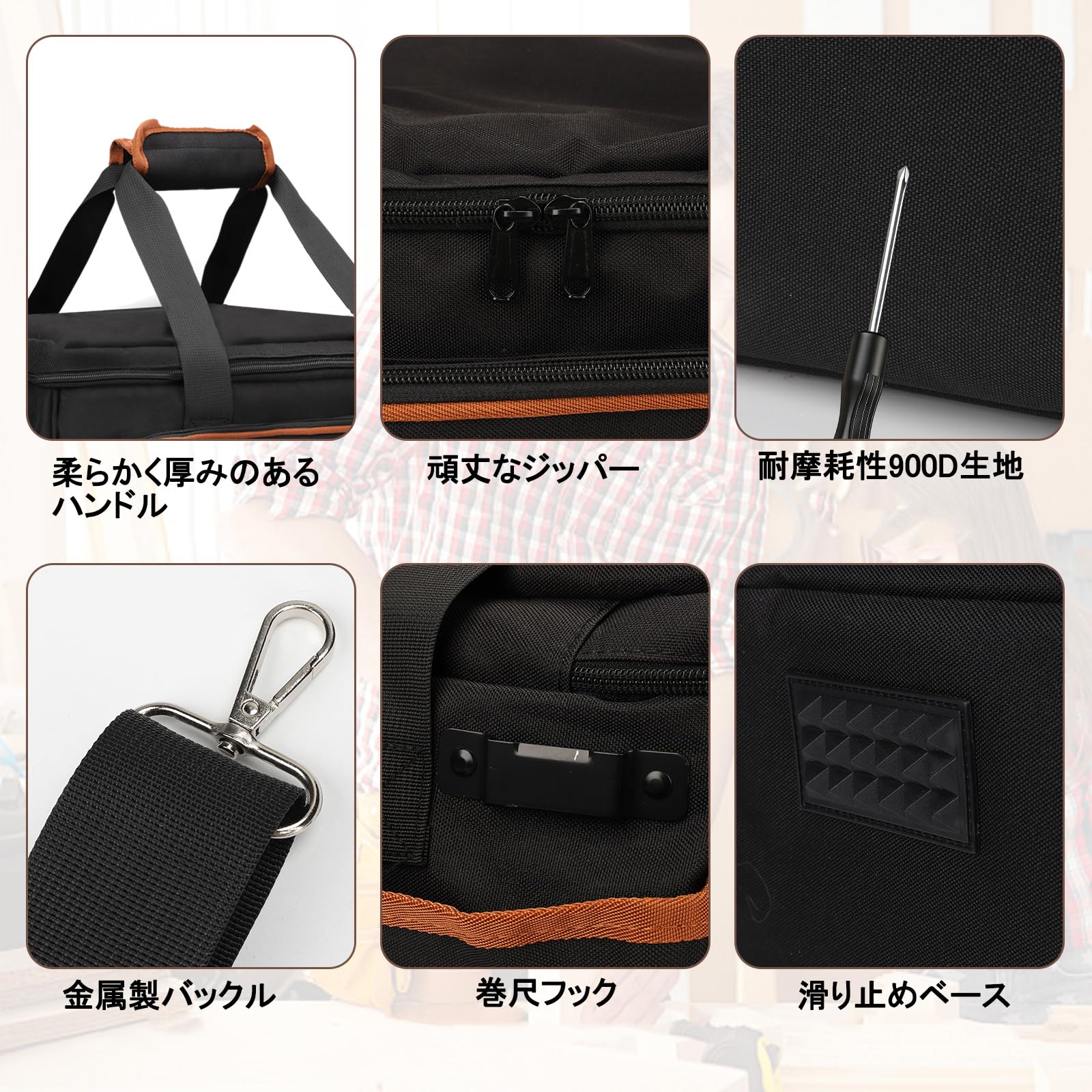 ツールバッグ 工具バッグ 大容量 工具入れ ばっぐ 多機能 工具袋 工具差し入れ 工具収納 ツールキャリーバッグ 900Dオックスフォード 肩掛けベルト付き ツール収納ばっぐ 道具袋 整備工具 工具収納 電気工事 木工用 47x35x25cm