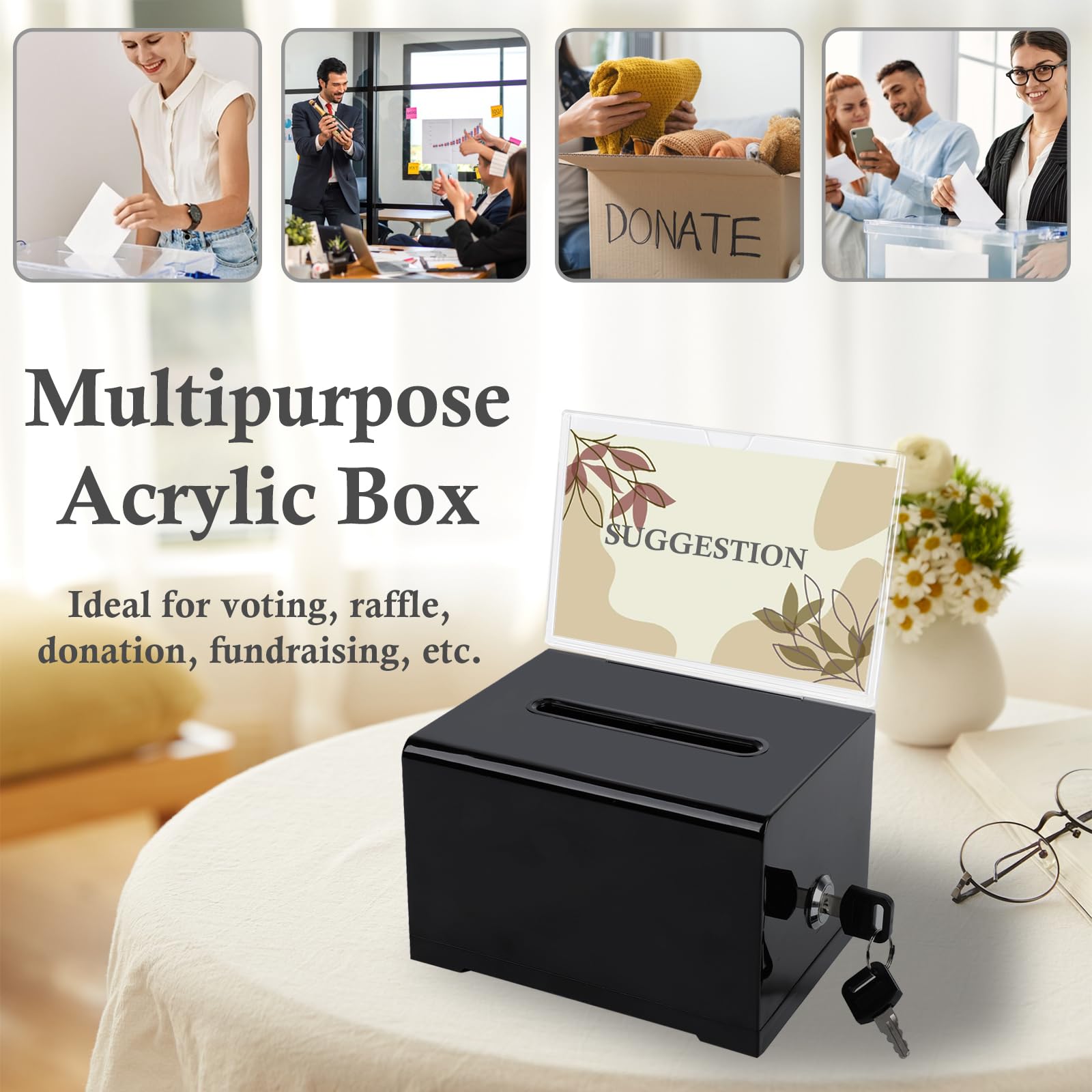 投票箱 アクリル 意見箱 鍵付き 提案箱 投函箱 募金箱 卓上置き アンケートボックス 寄付箱 貯金箱 大容量 会社 店舗 無人販売用 料金箱 イベント アンケートボックス
