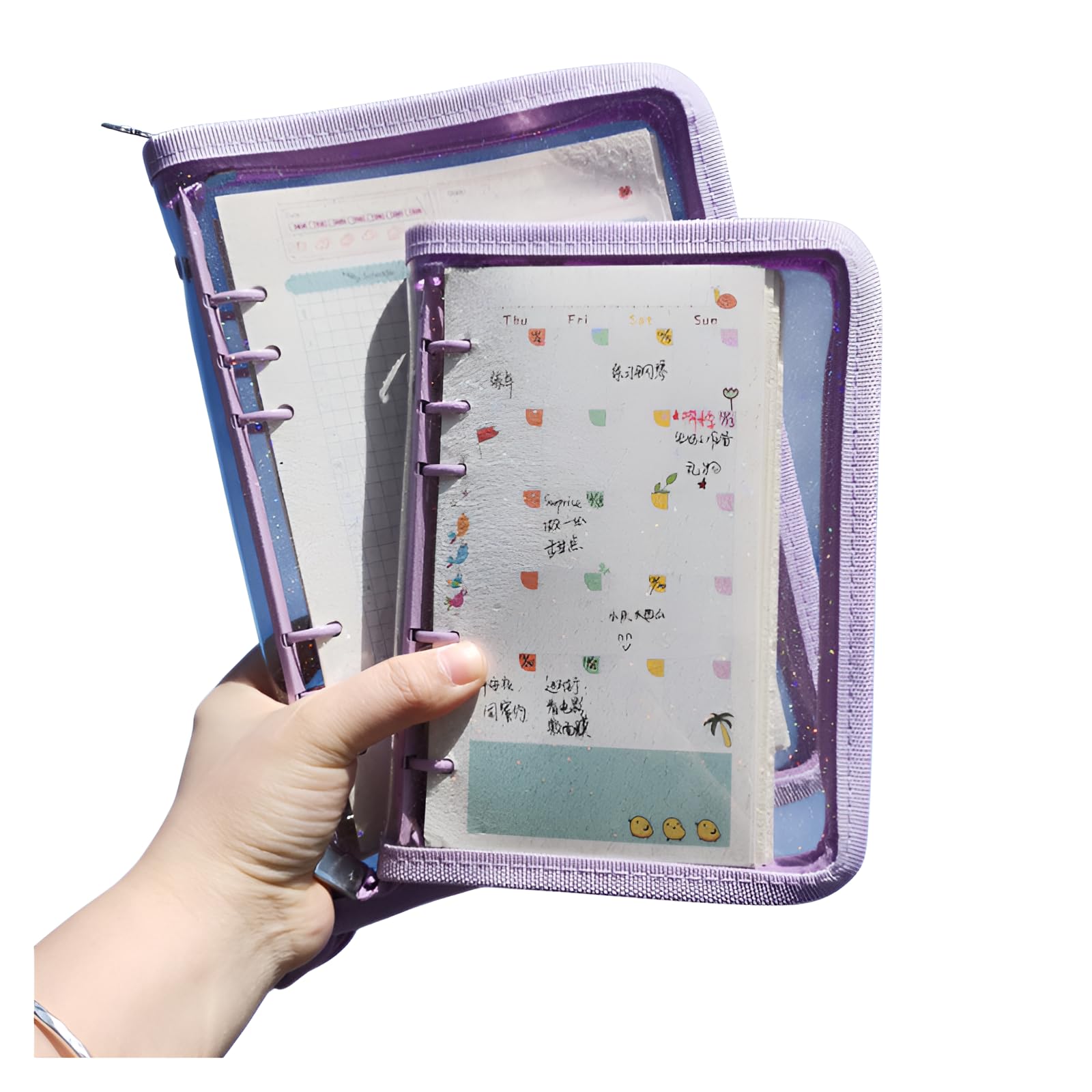 カスタマイズ自由な手帳カバーが新登場。10色のカラーバリエーションからお好みのトーンをお選びください。パステルカラーは春の新生活にぴったり、ダークトーンはビジネスシーンで洗練された印象を与えます。 6穴リング機構を採用し、ページ交換を驚くほど簡単に実現。リングを軽く押すだけで開閉でき、忙しい朝の準備時間もフリー。内側のポケットには大切なカードやメモを収納できるので、全ての情報を一冊にまとめられます。 素材には耐久性にPVCとPP樹脂を採用。表面のキラキラ加工が光を優しく反射し、のある質感を演出します。日常的な使用による擦れや軽い水滴にも強く、中身を確実に保護。長く使い続けられる信頼性が特徴です。 同色の固定バンドが書類の乱れを防止。通勤中や移動時でもページが飛び出す心配がなく、常に整然とした状態を保てます。バンド自体がおしゃれなアクセントとなり、なデザインにワンポイントの彩りを添えます。 A5サイズは仕事の資料整理に、A6サイズはポーチに入るコンパクトさが魅力。手帳としてだけでなく、写真整理や領収書管理など多目的に活用できる柔軟性を備えています。新しい季節の始まりに、自分だけのオリジナル手帳を作り上げてみませんか。
