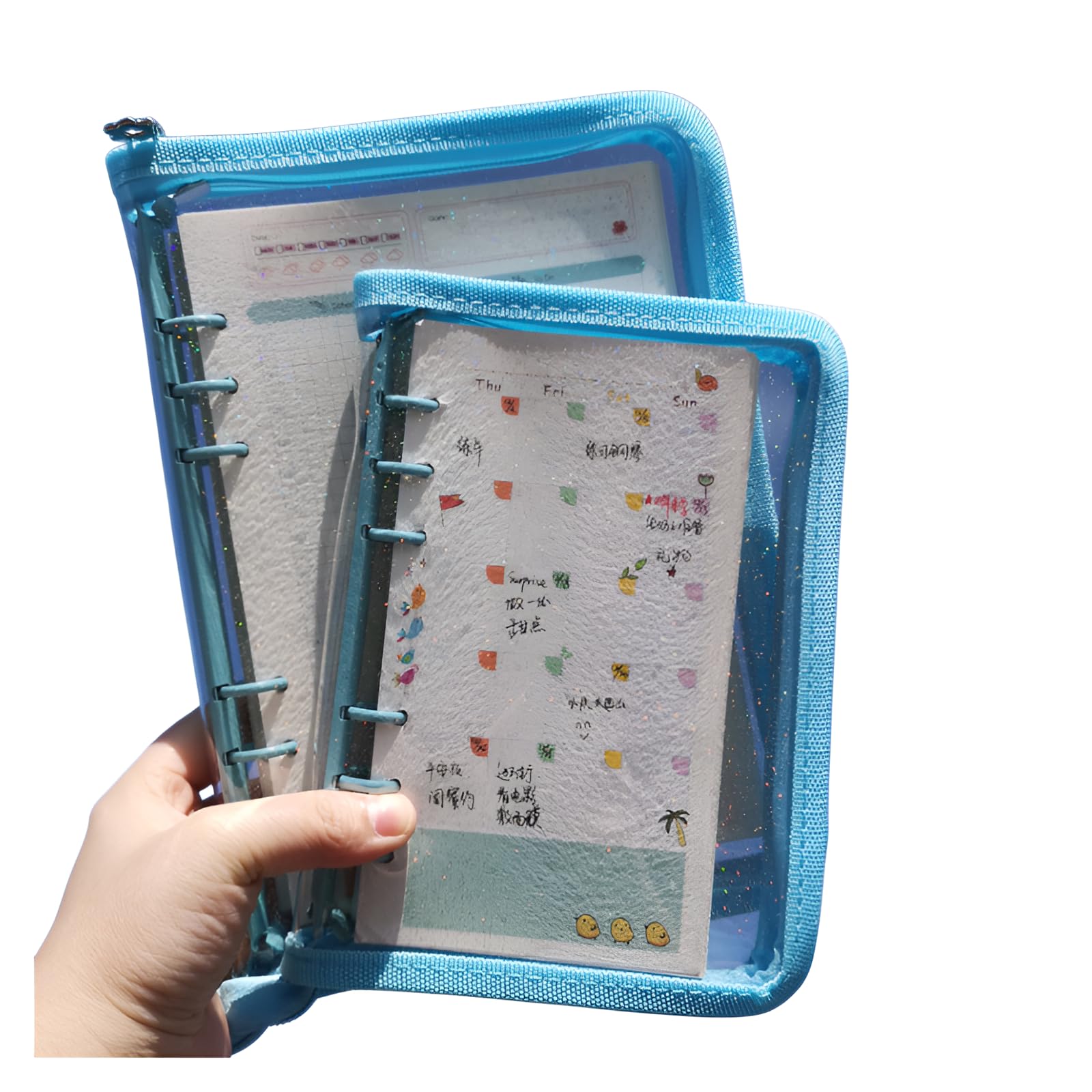 カスタマイズ自由な手帳カバーが新登場。10色のカラーバリエーションからお好みのトーンをお選びください。パステルカラーは春の新生活にぴったり、ダークトーンはビジネスシーンで洗練された印象を与えます。 6穴リング機構を採用し、ページ交換を驚くほど簡単に実現。リングを軽く押すだけで開閉でき、忙しい朝の準備時間もフリー。内側のポケットには大切なカードやメモを収納できるので、全ての情報を一冊にまとめられます。 素材には耐久性にPVCとPP樹脂を採用。表面のキラキラ加工が光を優しく反射し、のある質感を演出します。日常的な使用による擦れや軽い水滴にも強く、中身を確実に保護。長く使い続けられる信頼性が特徴です。 同色の固定バンドが書類の乱れを防止。通勤中や移動時でもページが飛び出す心配がなく、常に整然とした状態を保てます。バンド自体がおしゃれなアクセントとなり、なデザインにワンポイントの彩りを添えます。 A5サイズは仕事の資料整理に、A6サイズはポーチに入るコンパクトさが魅力。手帳としてだけでなく、写真整理や領収書管理など多目的に活用できる柔軟性を備えています。新しい季節の始まりに、自分だけのオリジナル手帳を作り上げてみませんか。