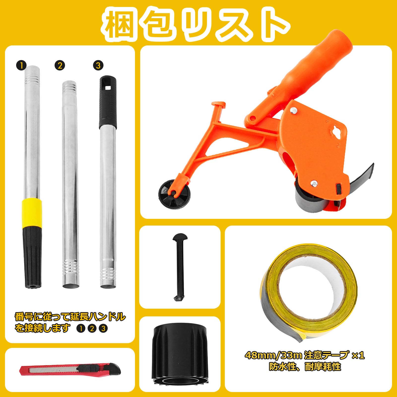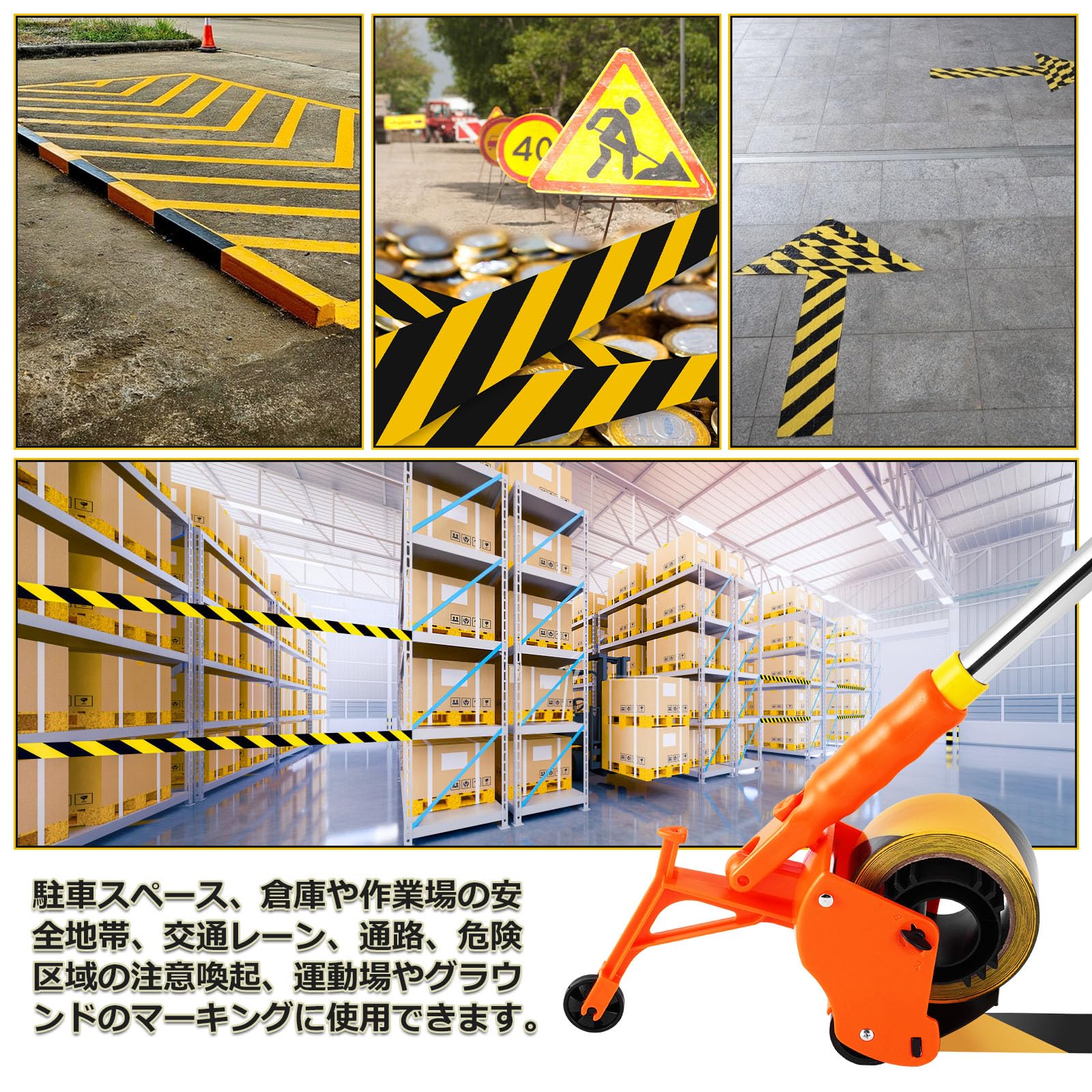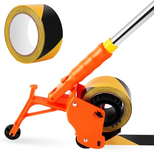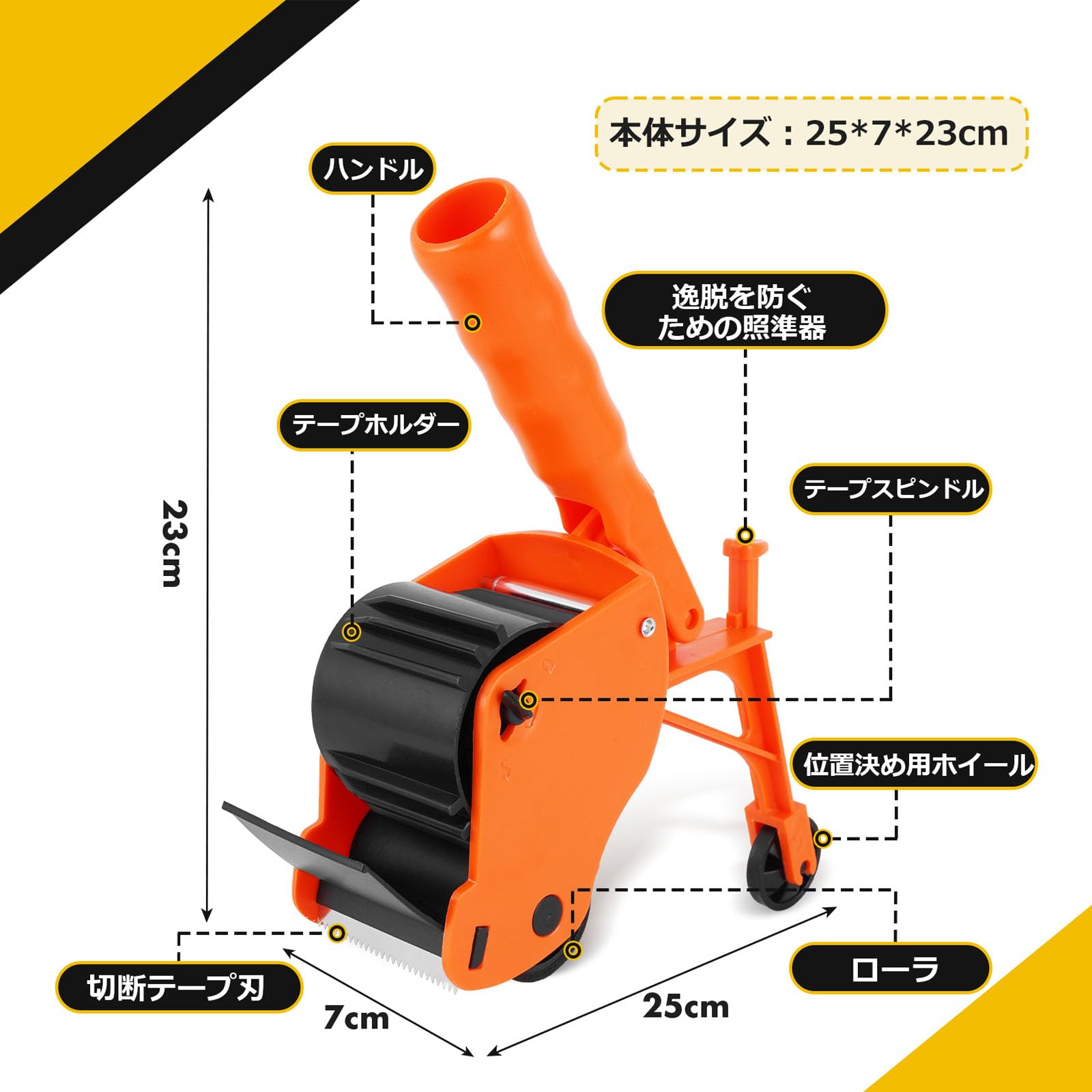 BAOSHISHAN テープ貼付機 テープ貼着装置 マーキングツール 路面用 フロア用 テープカッター テープディスペンサー ライン引き 体育館/アリーナ/倉庫/作業場/危険箇所の注意喚起 床面区切り表示用 延長ハンドル付き