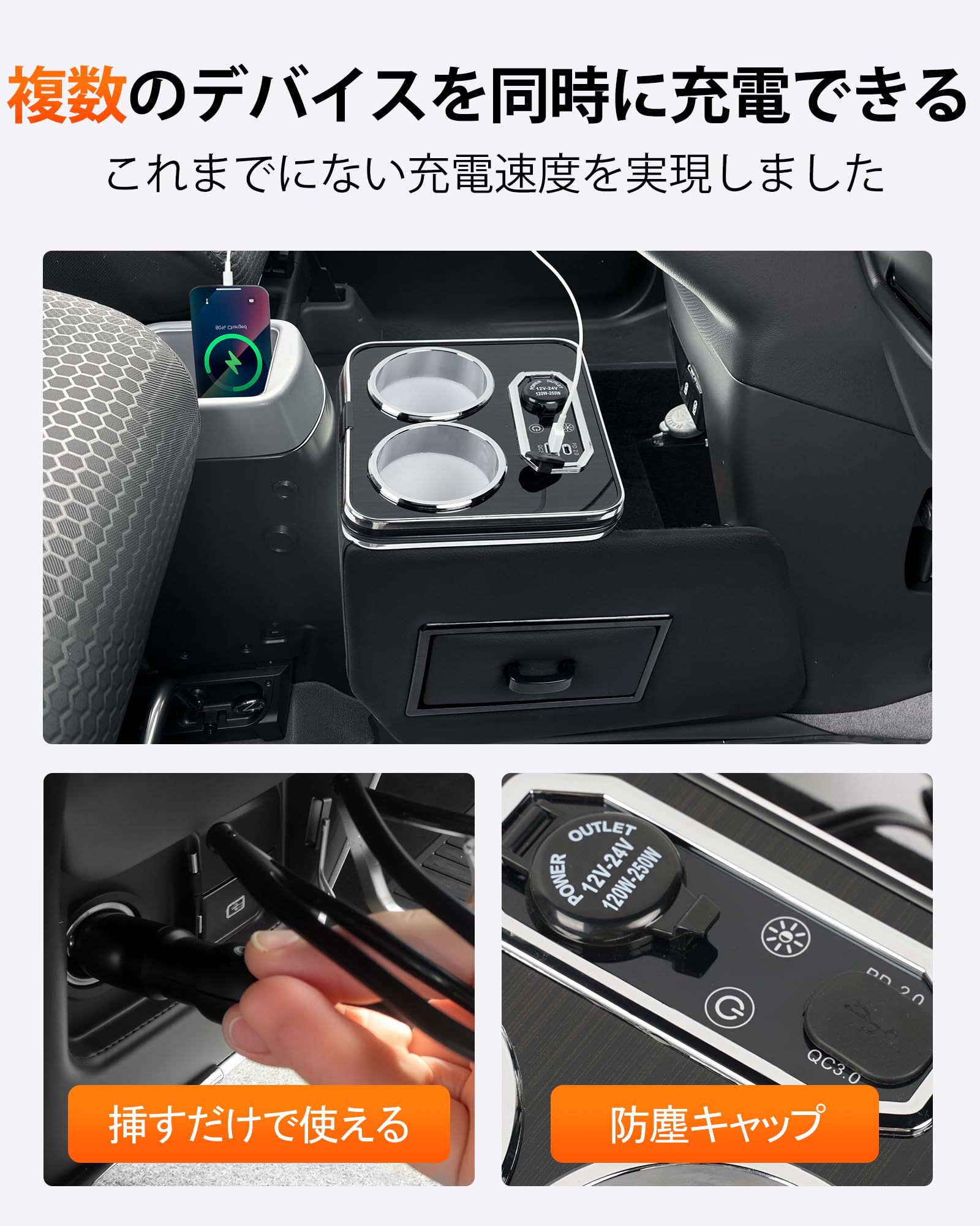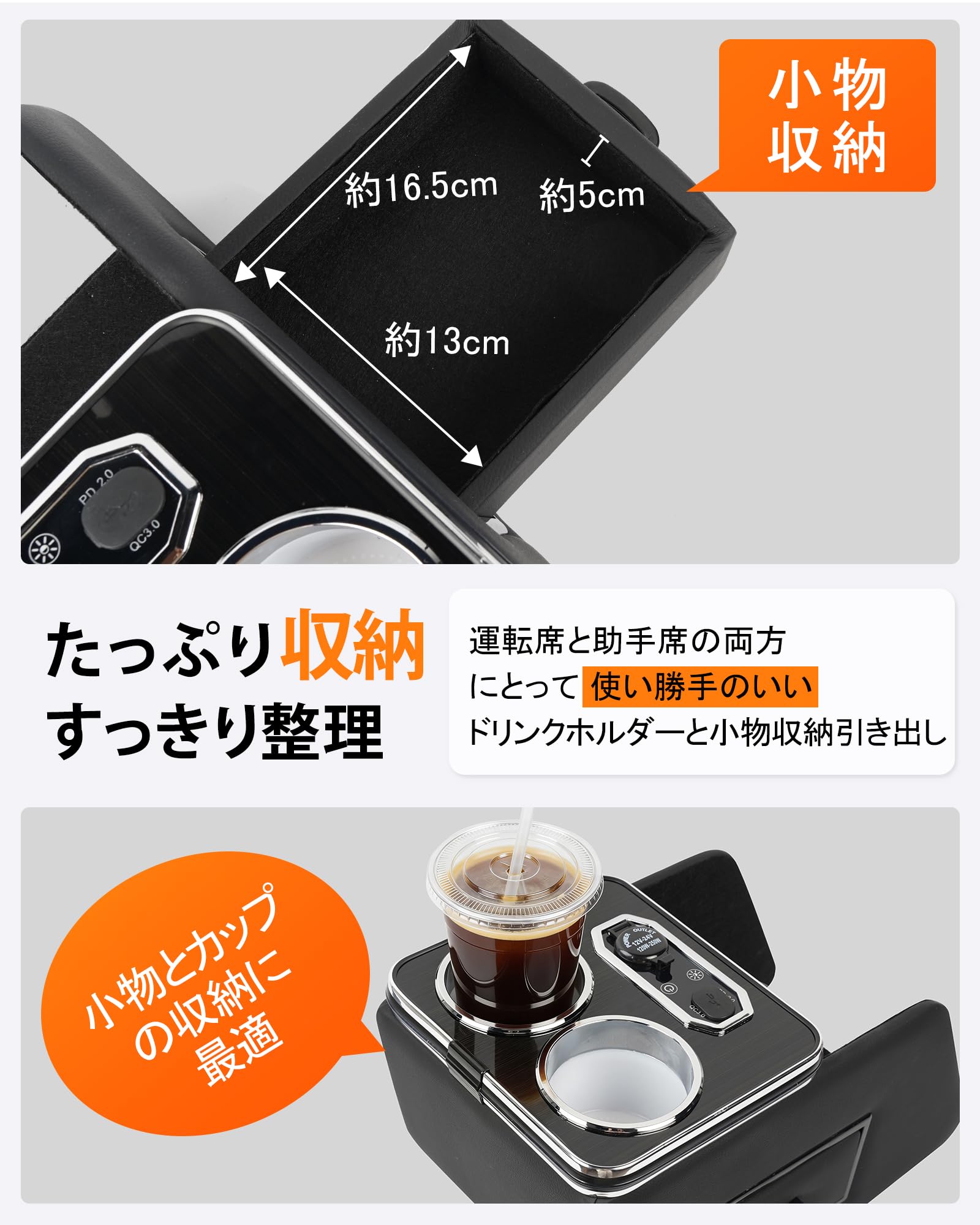 Auto Spec トヨタ ヴォクシー/ノア 80系 コンソールボックス 急速充電 ハイブリッド車 エスティマ エスクァイア80 コンソール Type-C QC3.0 USBポート NOAH VOXY ESQUIRE 多機能 収納ボックス ドリンクホルダー スマートコンソールボックス 大容量 内装パーツ カスタムパーツ 装着簡単 疲労軽減 インテリア パーツ
