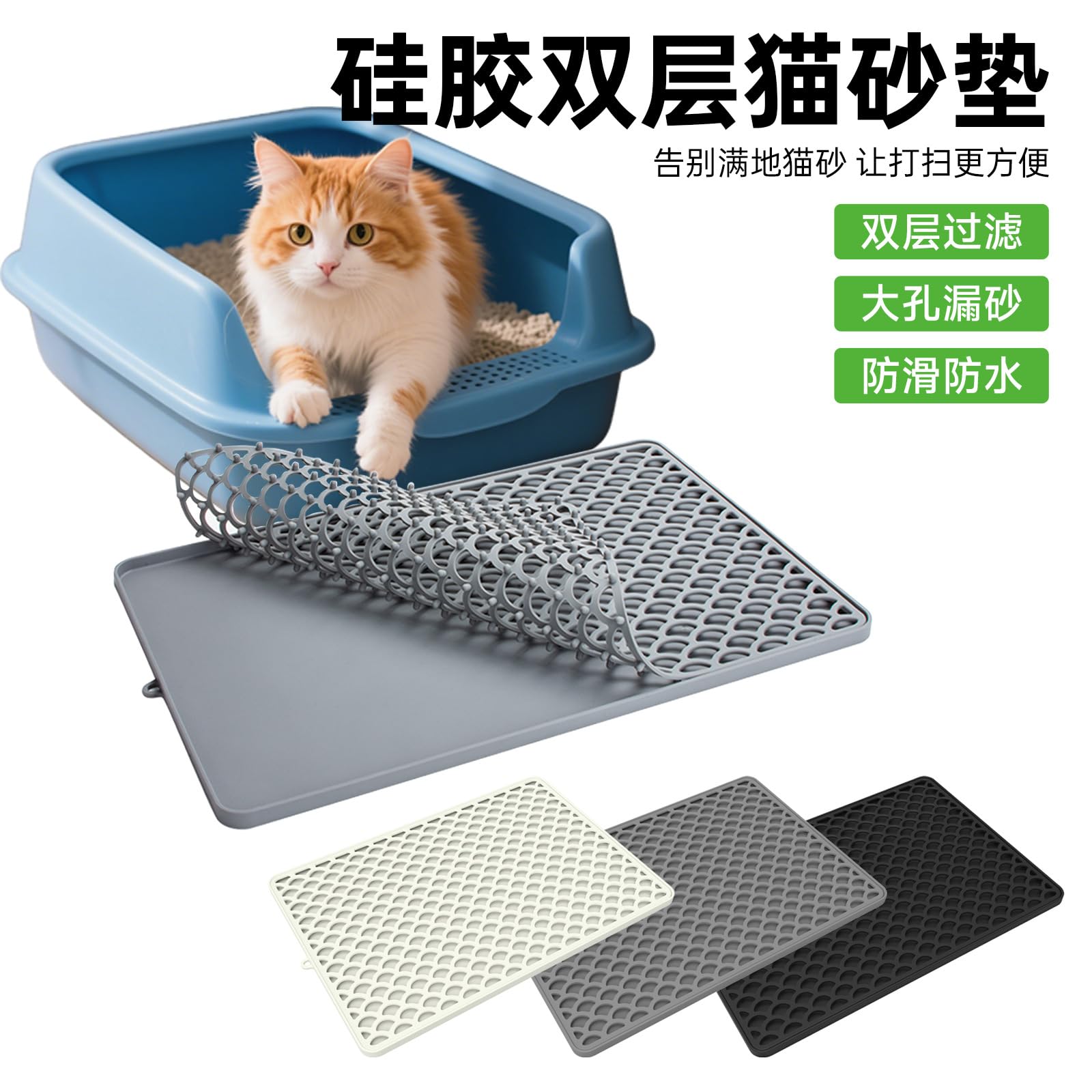 この二層構造のキャットリタートラップマットは、猫砂の散らかりを効果的に防ぎます。グレーのシリコン製で、ハニカムデザインが特徴的な本製品は、サイズが46.5×32.5cmと使いやすいサイズ感です。上層部の穴から落ちた猫砂を下層部でキャッチし、清潔な環境を維持します。防水・滑り止め加工が施されており、猫のトイレ周りを常に清潔に保ちます。厚さは上層が0.9cm、下層が1cmで、合計約1.9cmの厚みがあり、耐久性に優れています。お手入れも簡単で、水洗いが可能です。カラーバリエーションも豊富で、グレーの他にホワイトやブラックもご用意しています。猫との生活をより快適にする必須アイテムです。