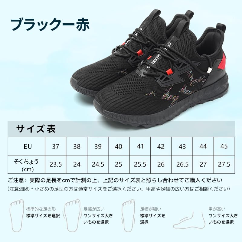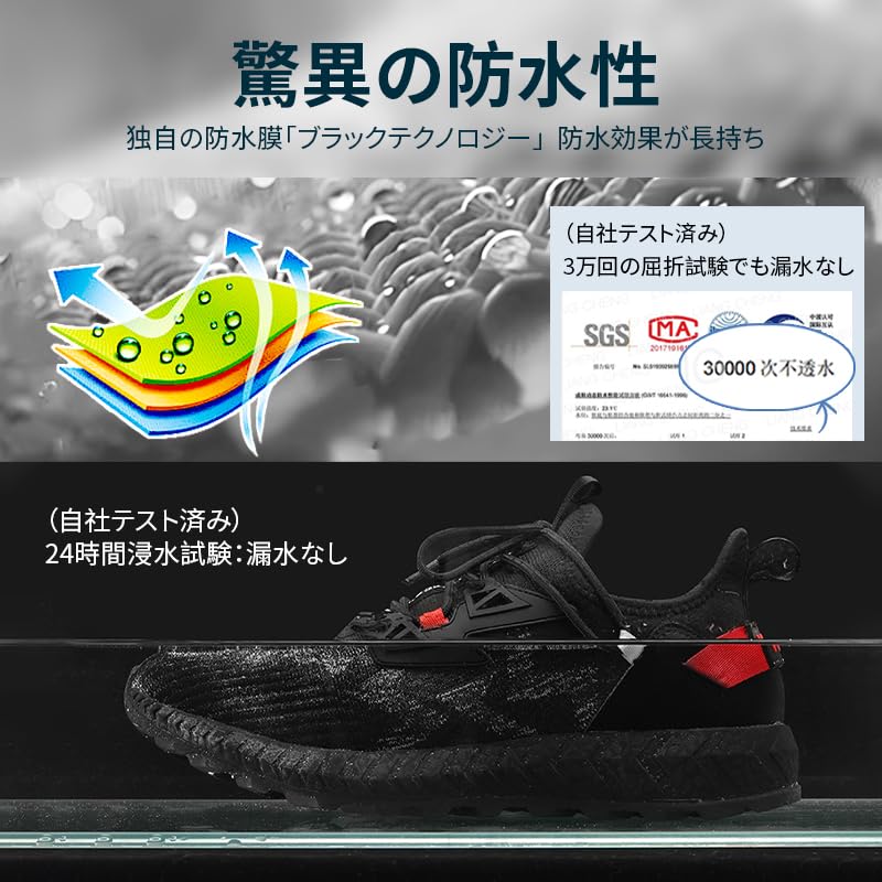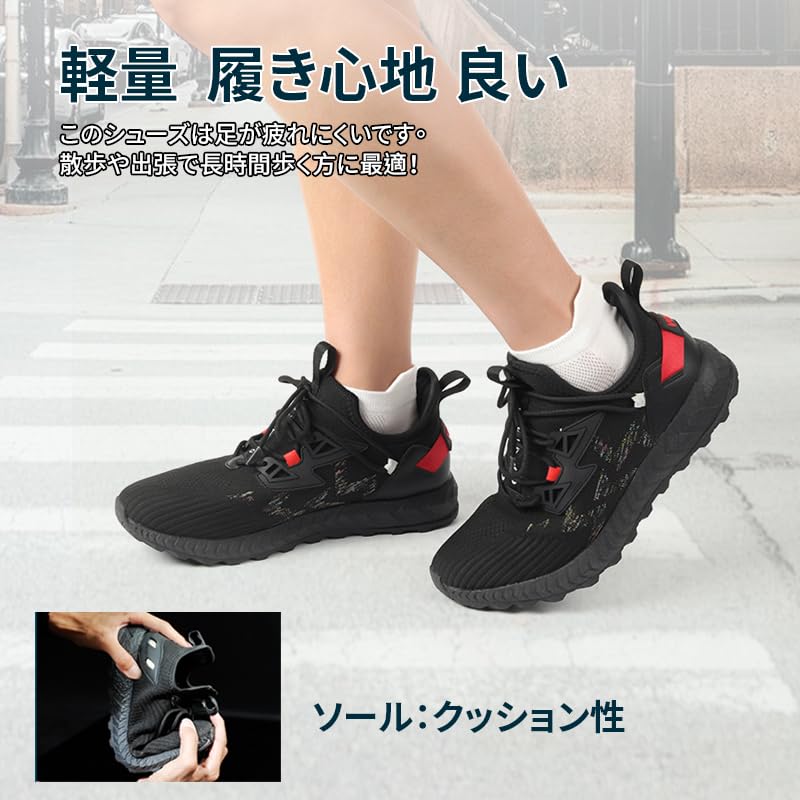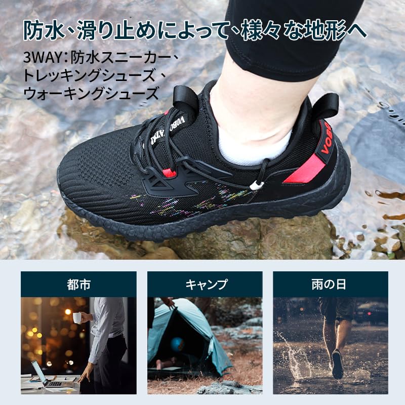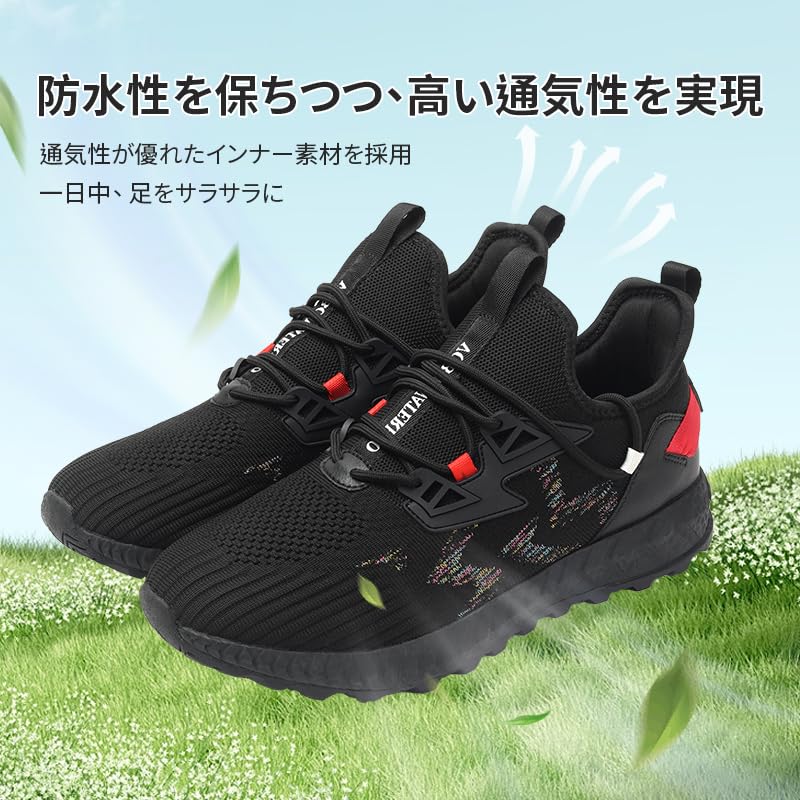 [pepzikyペプジキー] ウォーキングシューズ 通気性 防水 防滑 防汚 メンズ レディース 登山 キャンプ スポーツ ソフトインソール (ブラック-赤)