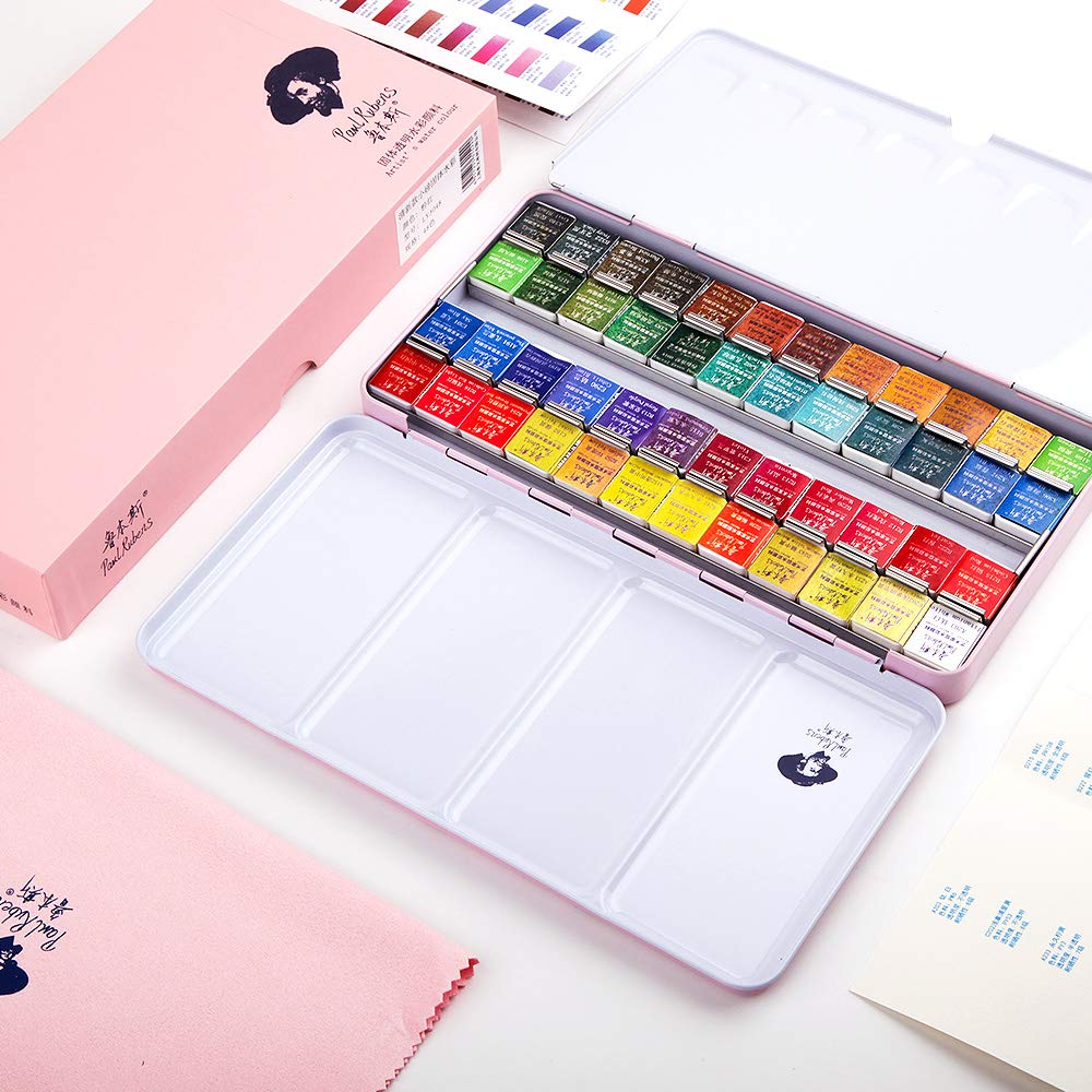 Paul Rubens アーティストグレード 水彩ペイント 48色 ソリッドケーキ ポータブルメタルボックス付き アーティスト 初心者 趣味 学生用