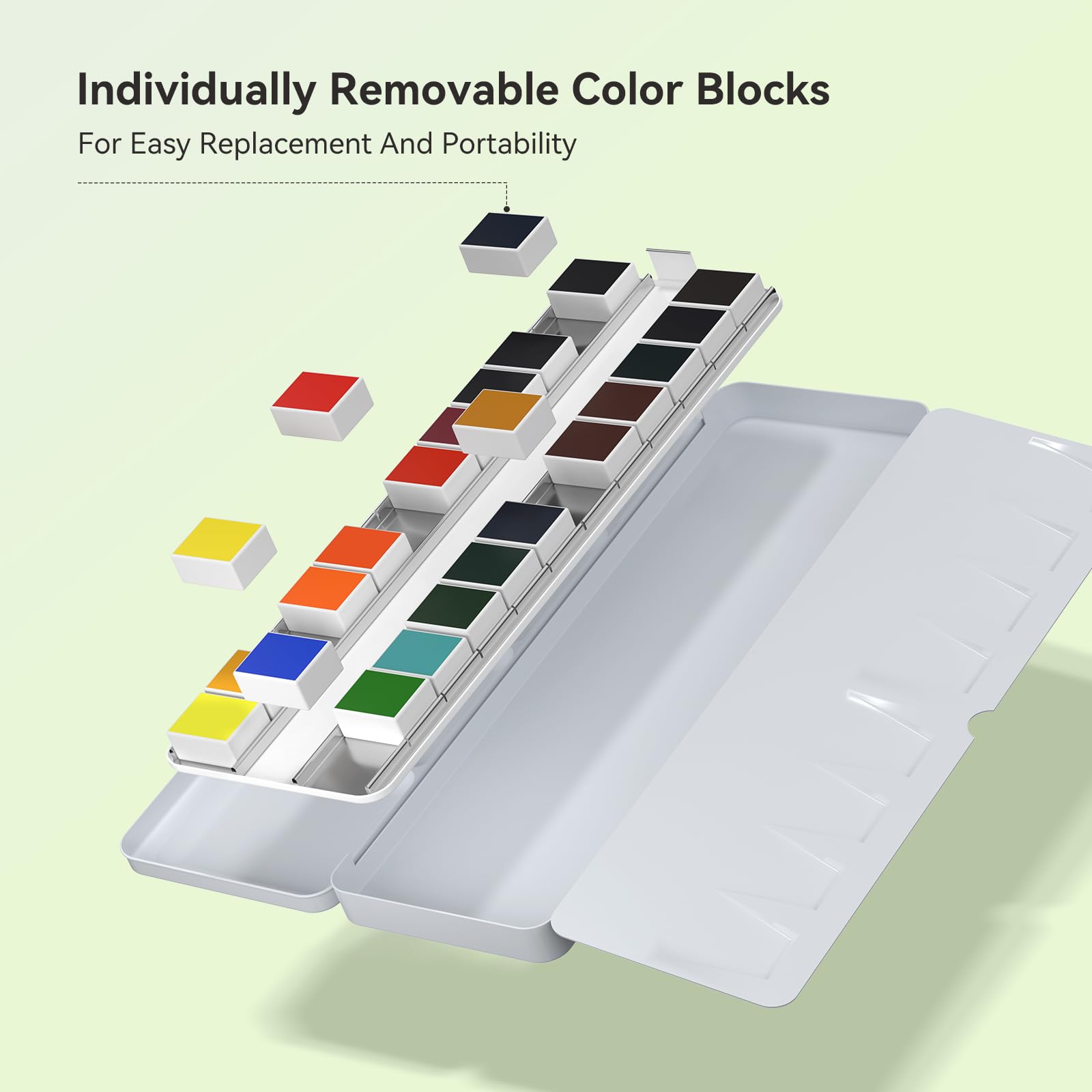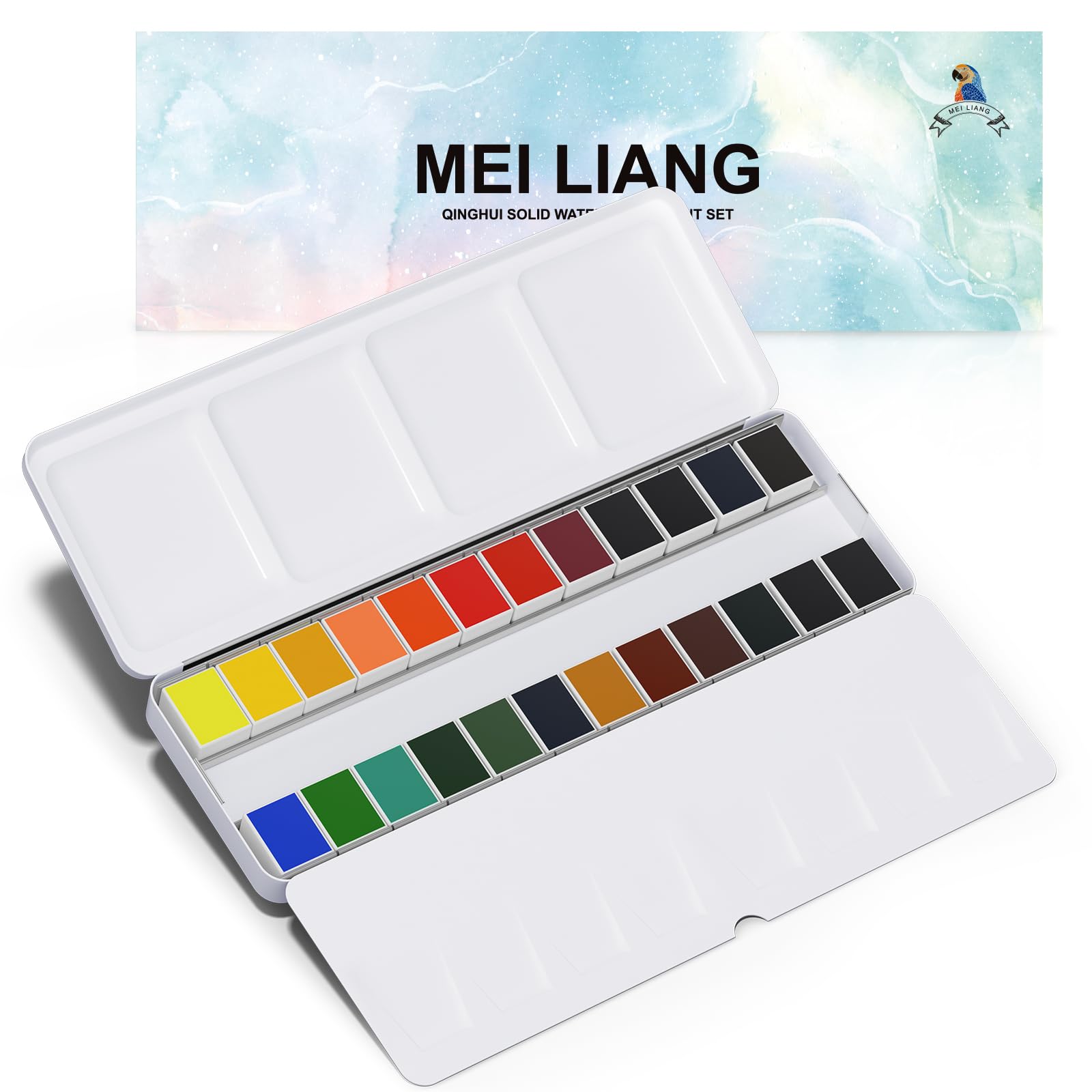 MEI LIANG 24色 単色 水彩絵の具セット 鮮やかで高着色色 取り外し可能なパン 内蔵パレット ポータブルメタルケース 学生/初心者/屋外スケッチ用