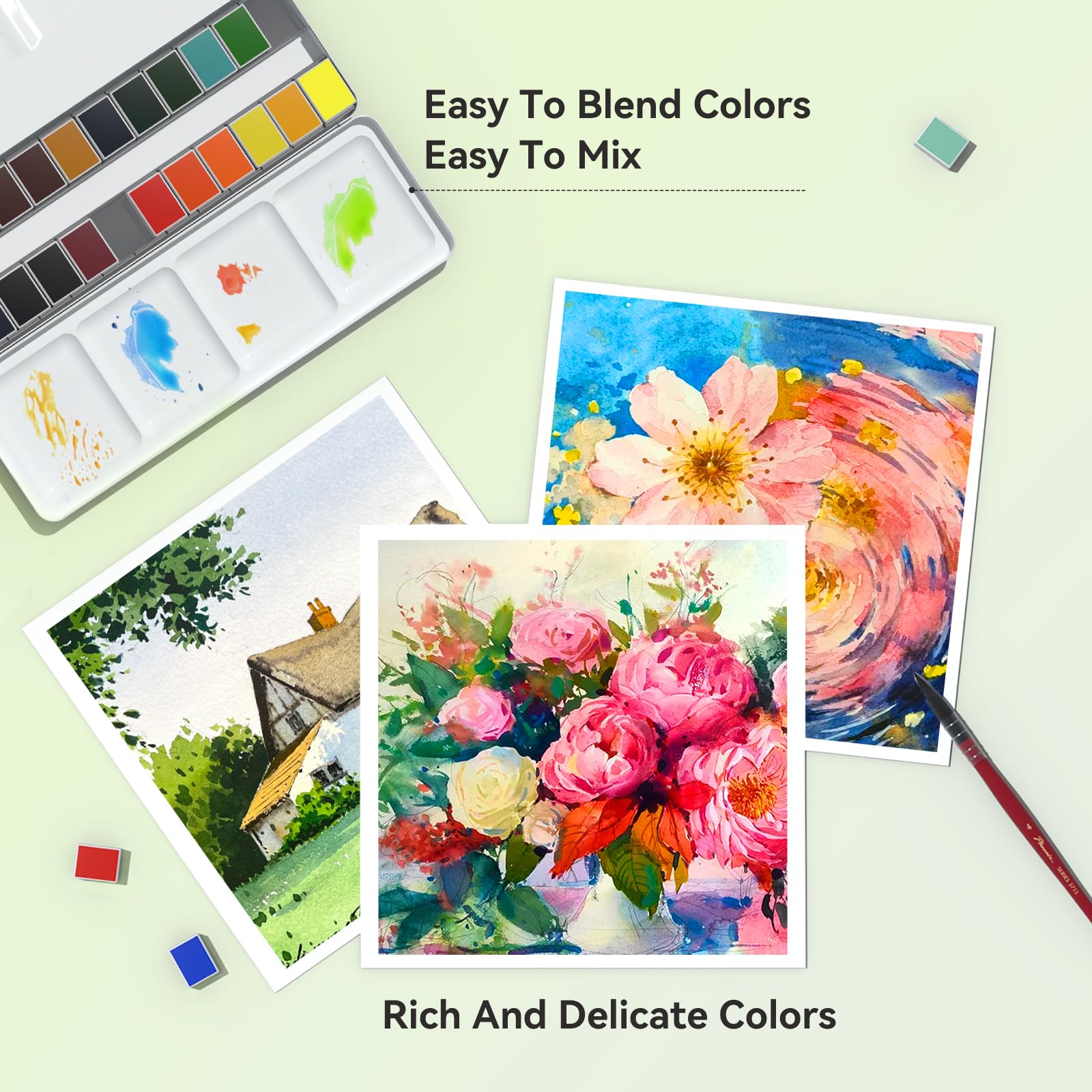 Paul Rubens 水彩絵の具セット、24色ソリッド水彩絵の具、簡単にブレンドして拡散できる水彩パレット、コンパクトでポータブルな旅行用水彩セット初心者やプロに最適