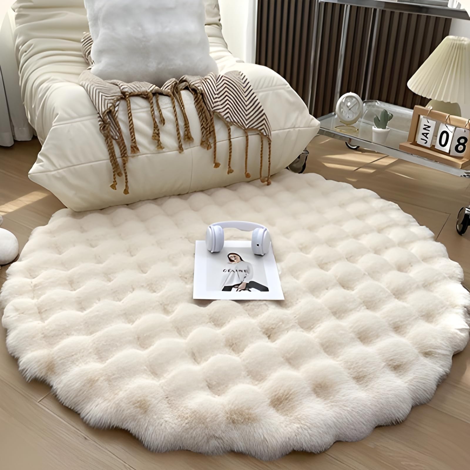 GIIPET-ラグ カーペット 冬 ふわふわ 北欧 ラビットファー ラグマット 円形洗える 滑り止め付 防ダニ 抗菌 防臭 優しいフランネルラグ 絨毯 折り畳み 抜け毛無し 無地 シンプル 6色選べる 8年中使えるタイプ 床暖房 ホットカーペット対応(ベージュ、90x90cm)