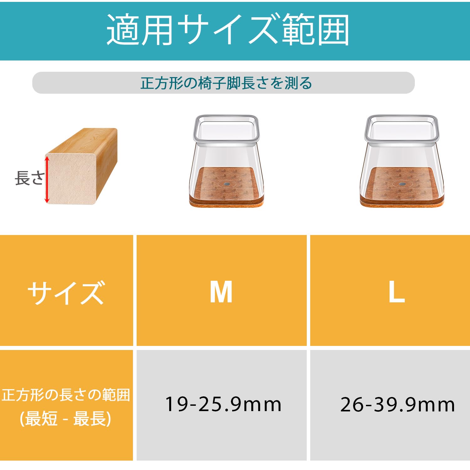 椅子脚カバー 四角 椅子足カバー いすのあし カバー きず防止 シリコン 防音 四角の椅子脚 移動ラクラク フェルトパッド クリア 8個入-L