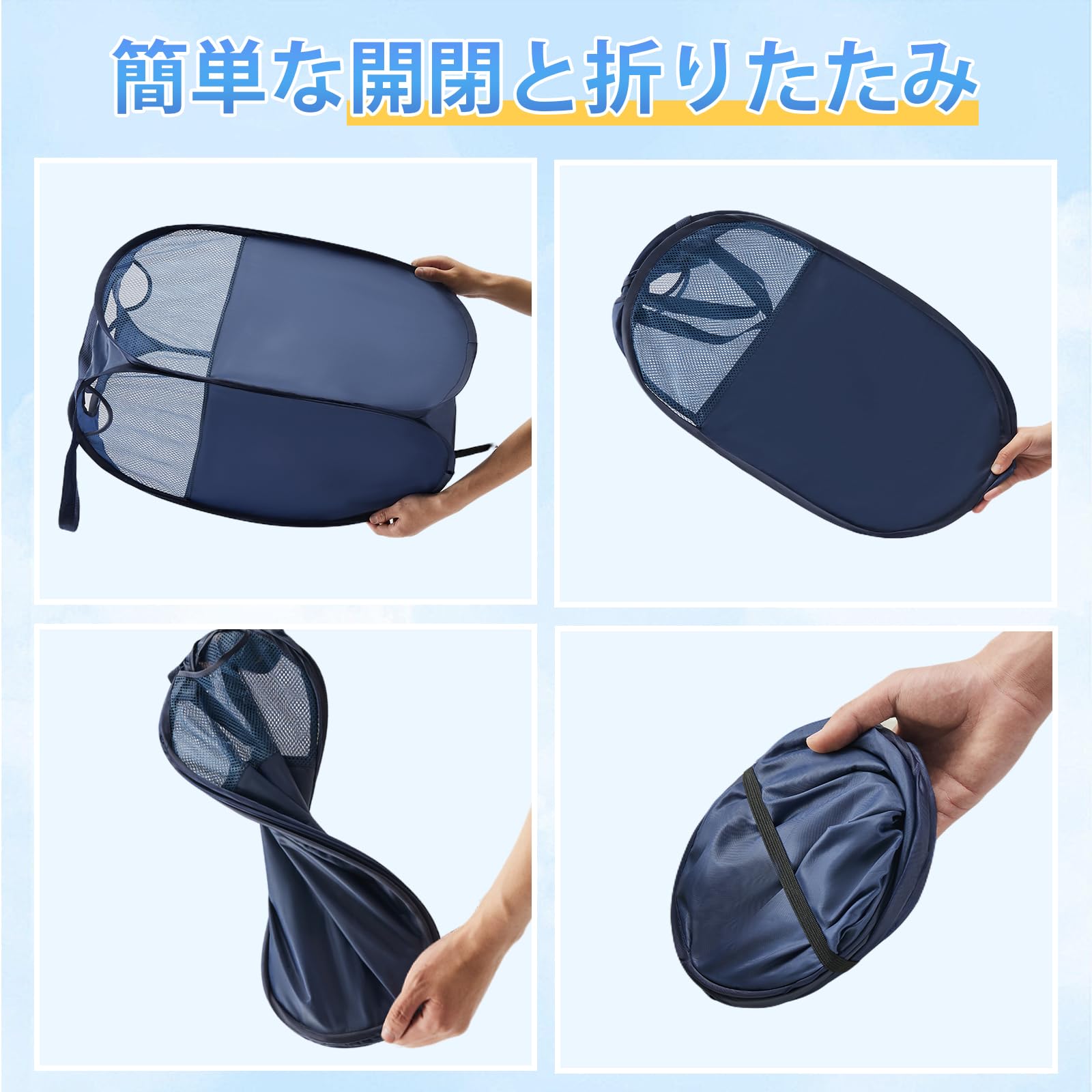 YOUDENOVA ランドリーバスケット 大容量100L せんたくかご 85%防水性 折りたたみ 耐荷重15KG 洗濯物入れ 取っ手付き ランドリーバッグ 衣類収納 寝室 脱衣所 リビング クローゼット内 幅40×高さ79(cm) (ネイビー、100L)