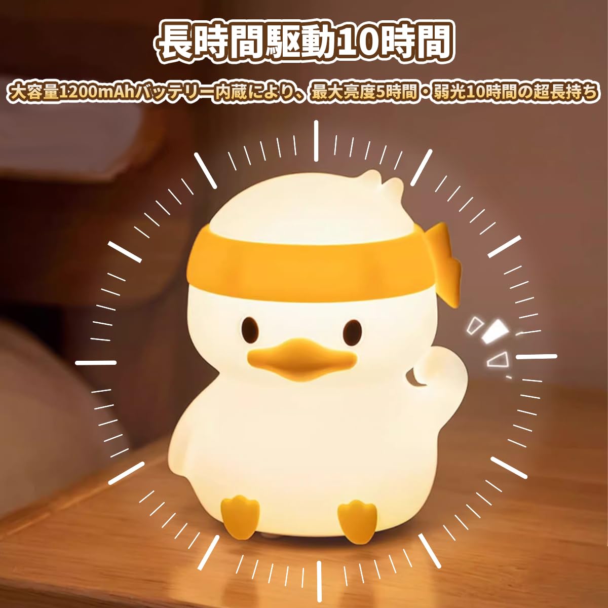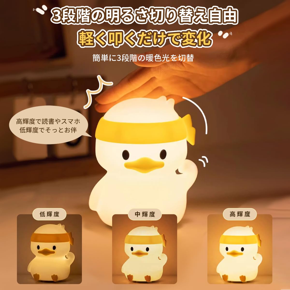 SUSWIMナイトライトアヒルのヘッドランプシリコン3段調光シリコンのUSB充電癒しのベッドのヘッドランプ赤ちゃんのスマートフォンのスタンド機能授乳ライトのいつものナイトライトのプレゼント (花をつけたアヒル) (奮闘するアヒル)