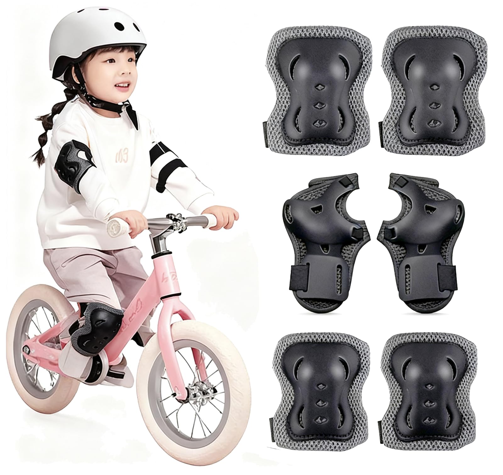 安全性と快適さを兼ね備えた6点セットのキッズプロテクターです。自転車、スケートボード、ローラースケートなど、アクティブな遊びをする子供たちをしっかり守ります。セットには肘、手首、膝のガードが含まれており、マジックテープ式で着脱が簡単です。軽量設計で子供の動きを妨げることなく、長時間の使用でも負担になりません。男女兼用のブラックカラーで、おしゃれでかわいいデザインは子供たちにも好評です。