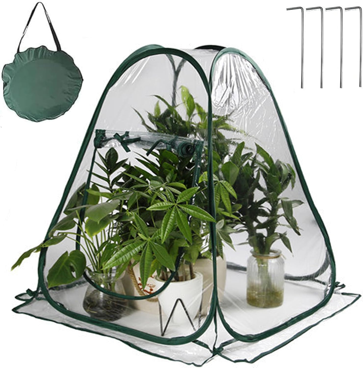 ビニールハウス ポップアップ植物温室 防水防風 雨除け折りたたみ PVCカバー ガーデン温室 70*70*73cm 夏秋の長雨も安心 通気性良好 固定用ピン付き 花園温室 家庭用 霜対策 保温 防寒 収納可能