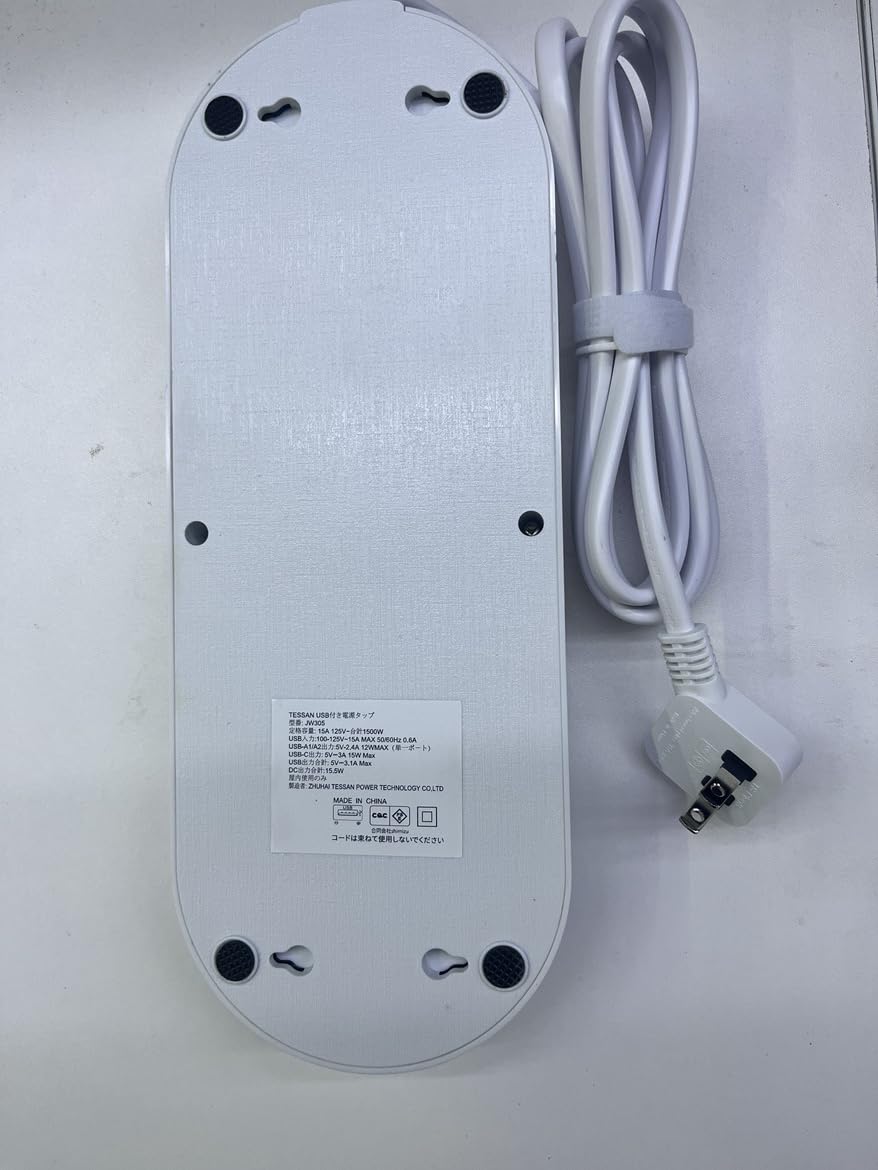 電源タップ USB-C付き TESSAN コンセント タップ 3個AC口 2個USB-A 1つType-C たこあしコンセント タコ足配線 雷ガード付 ホワイト 日本国内でのみ使用可能