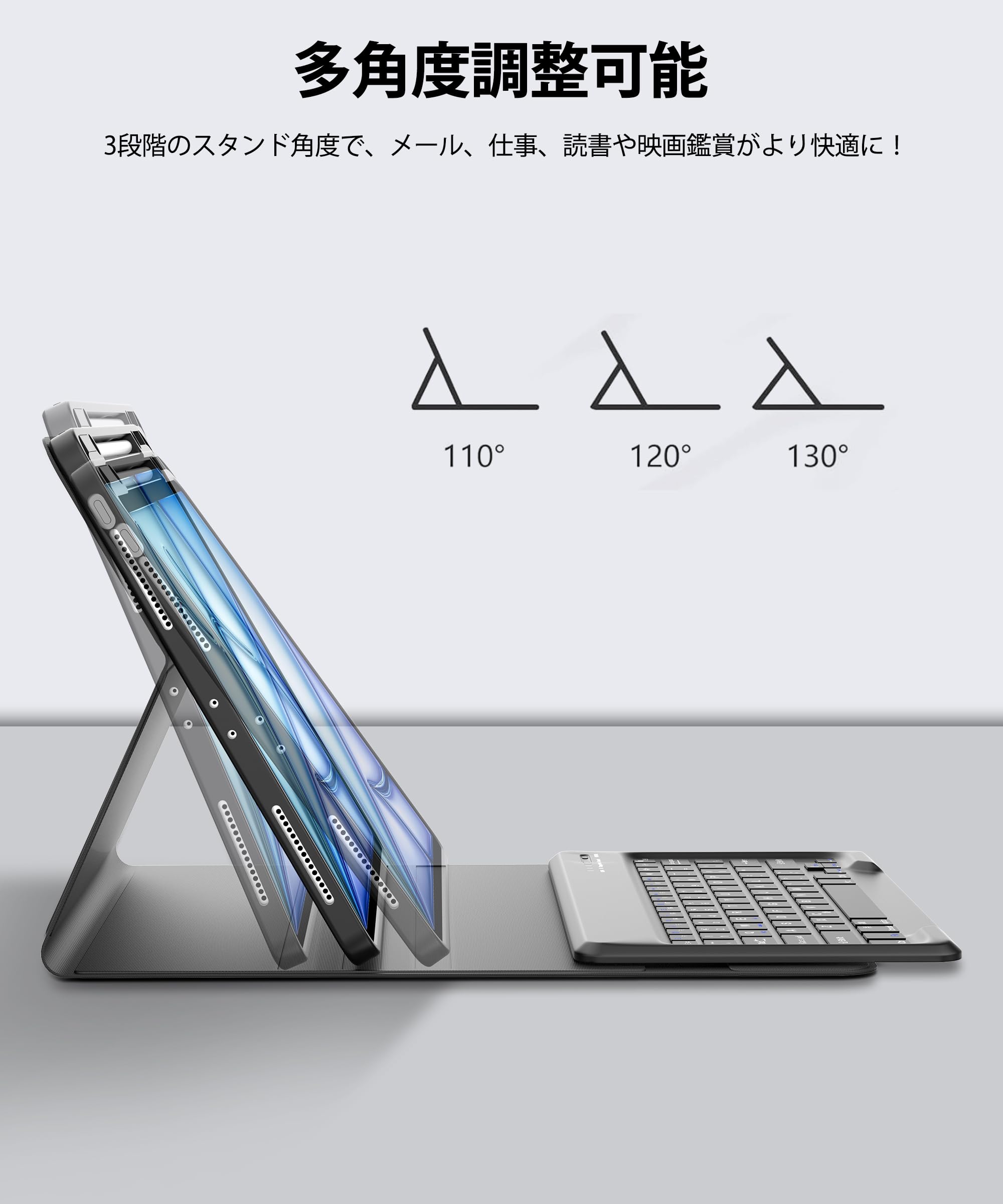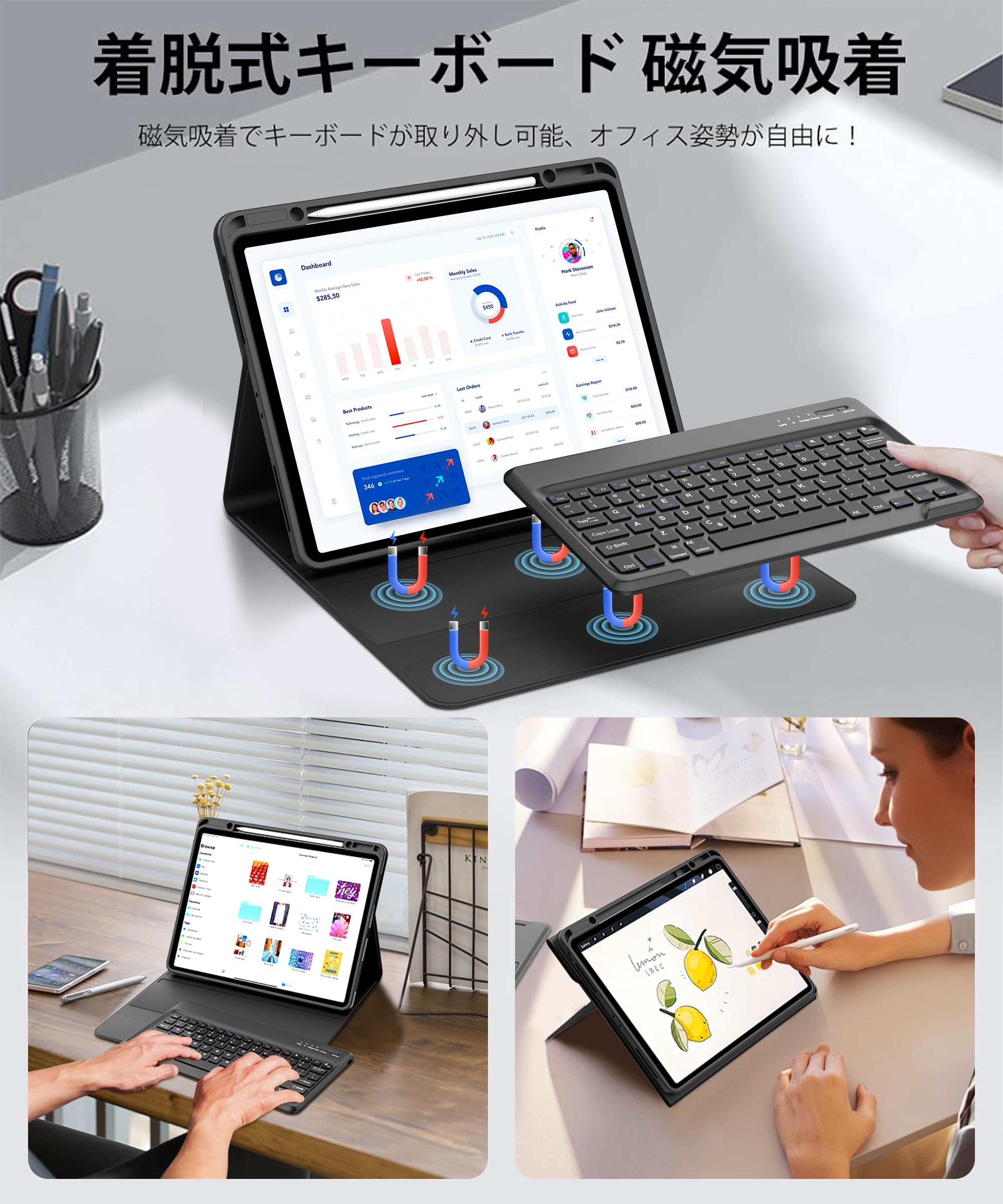 Earto iPad Air 第5世代 キーボードJIS基準日本語配列ipad pro 11 キーボード iPad air 4 キーボード付きケース タッチパッマルチペアリングBluetooth キーボード 脱着式 多角度調整ペンシルホルダー付き 薄型「iPad 10.9(air4世代/air5世代)/iPad Pro11(2022/2021/2020/2018モデル)兼用」 黒