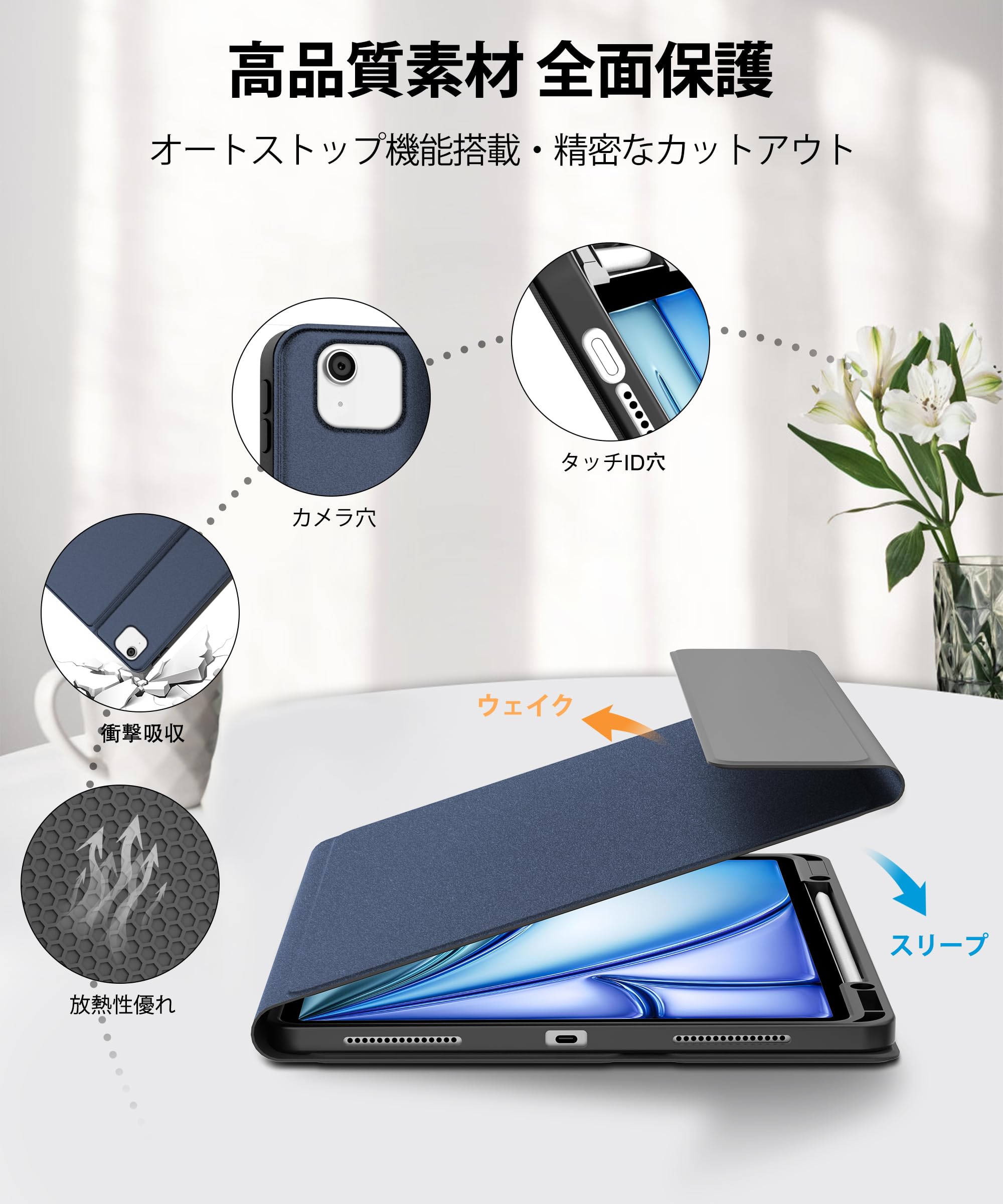 SENGBIRCH iPad Air (M3/M2) 13インチ キーボード iPad Pro 12.9 キーボード付きケース 第6/5/4/3世代対応 軽量 着脱式 ワイヤレス Bluetooth キーボードカバー Apple pencil収納 多角度調整 オートスリープ機能 防汚素材 耐衝撃 全面保護 日本語取扱説明書付き ネイビー