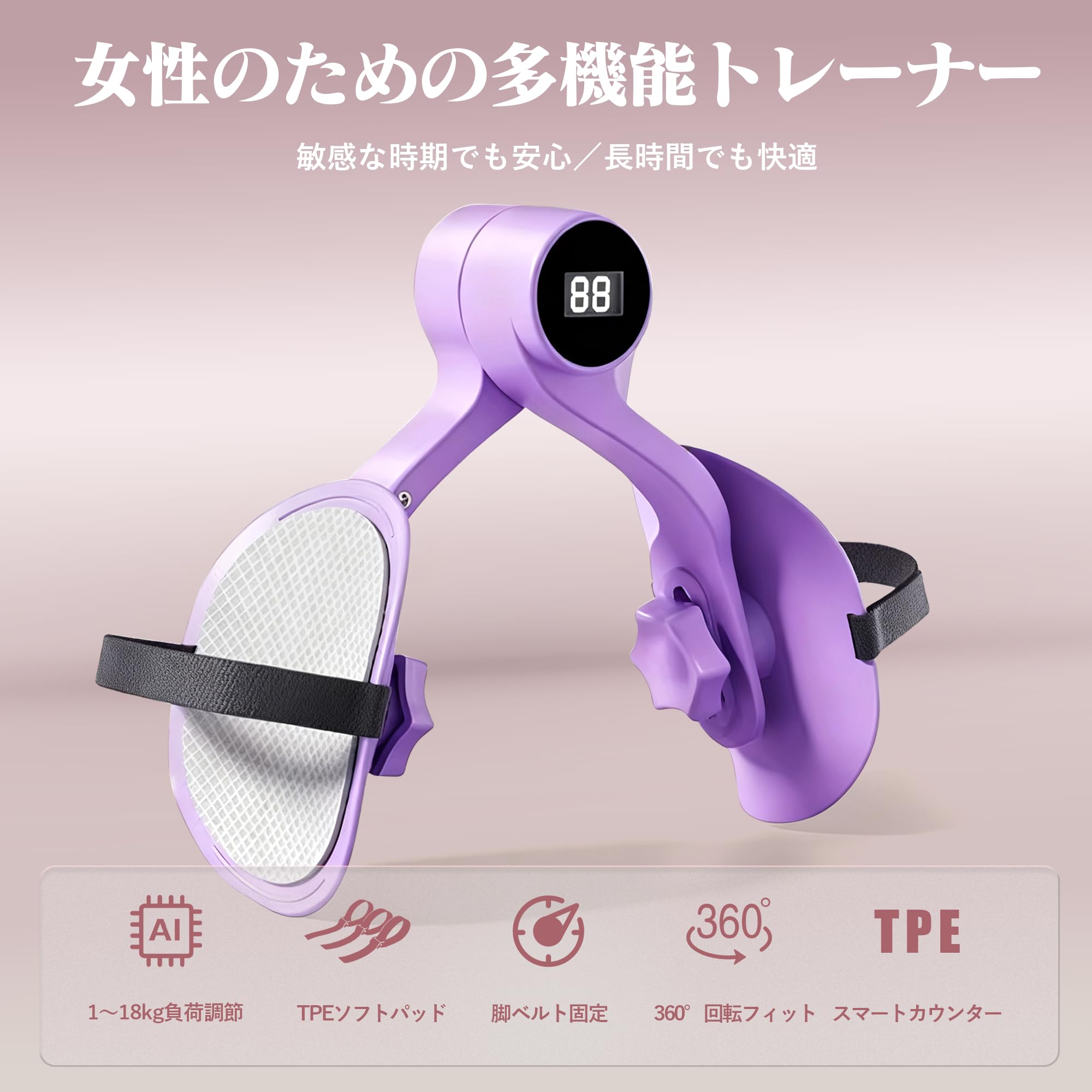 Grazodinex 骨盤底筋 トレーニング器具【回数が見えるスマートカウンター】 内転筋 筋トレ ヒップアップ 太もも引き締め 1〜18kg負荷調節 360°回転パッド 滑り止めバンド付き 産後ケア 美尻 フィットネス
