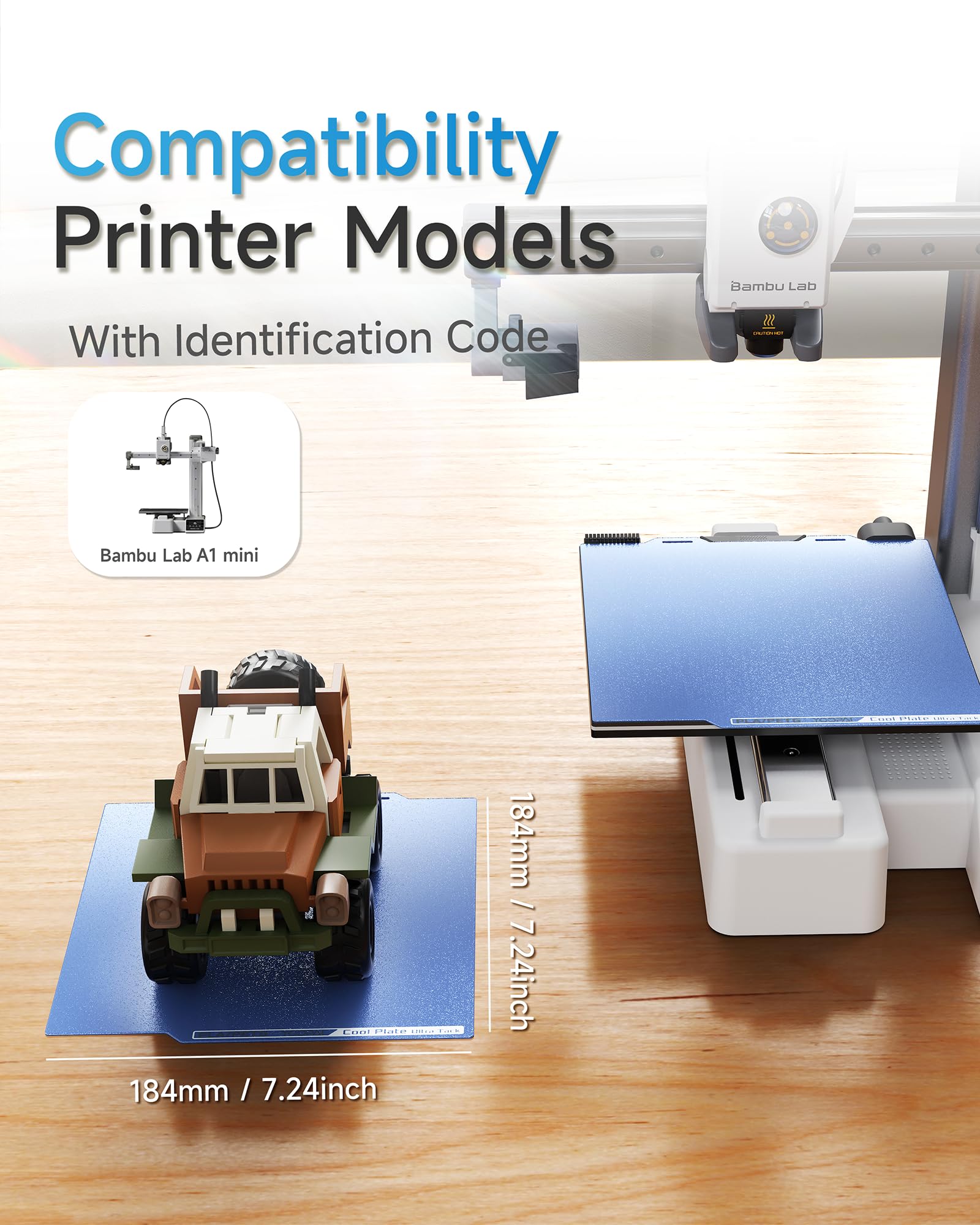 YOOPAI コールド低温ビルドプレート A1 mini専用 184×184mm 両面タイプ 超強力密着 UltraTackコーティング 3Dプリンター用プラットフォーム ブルー