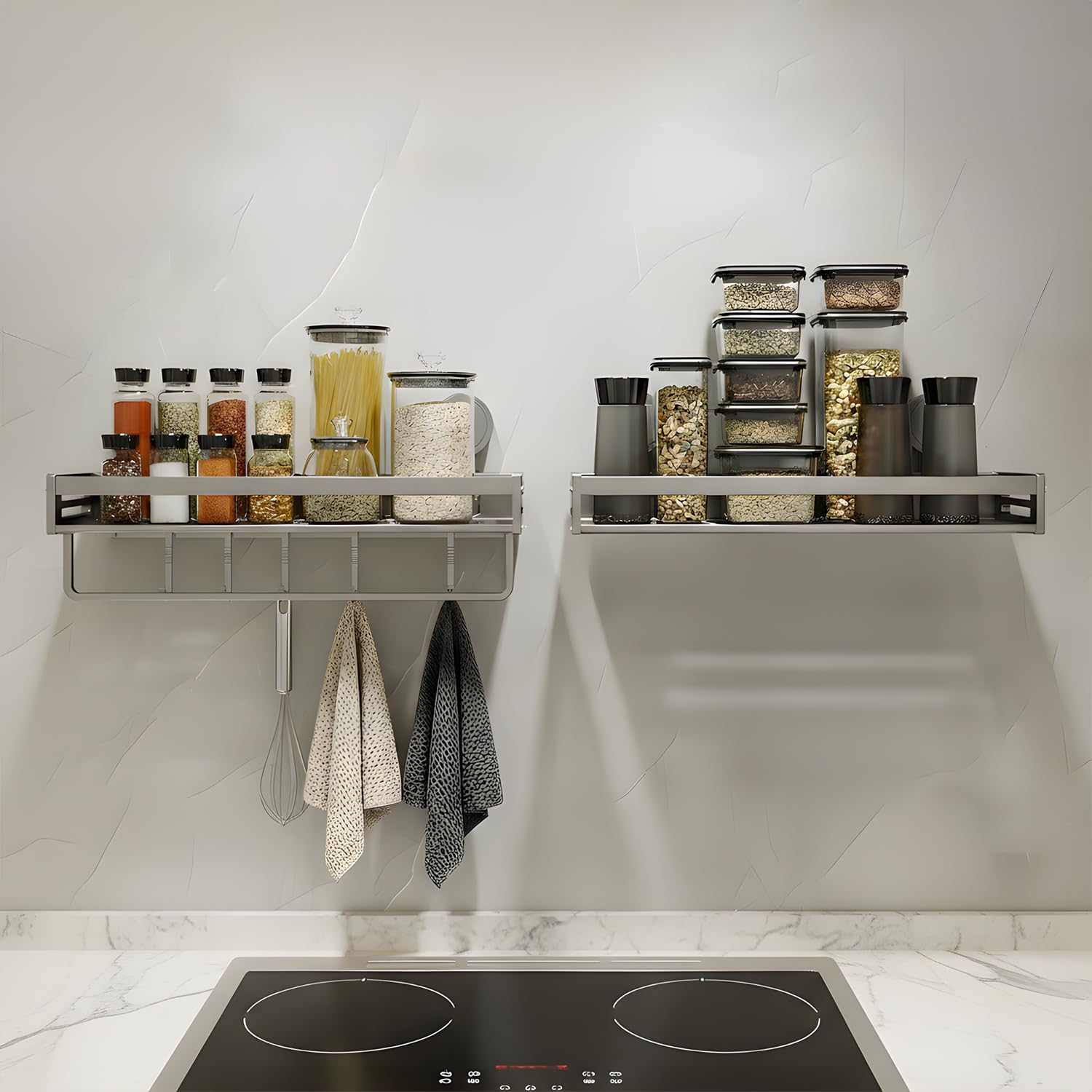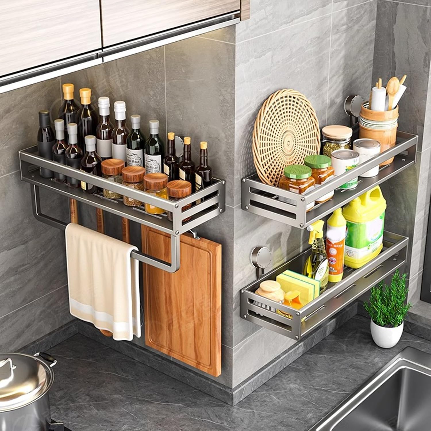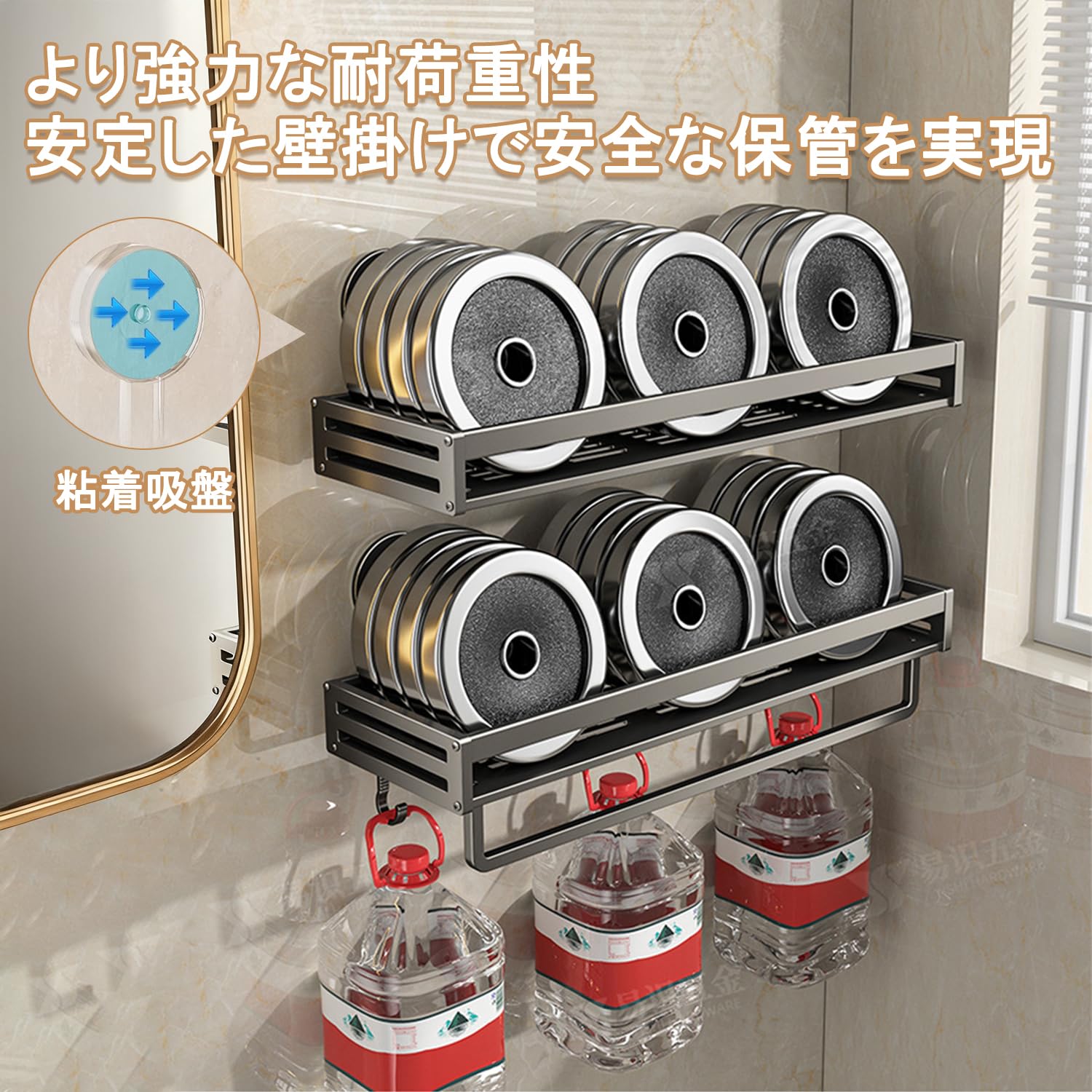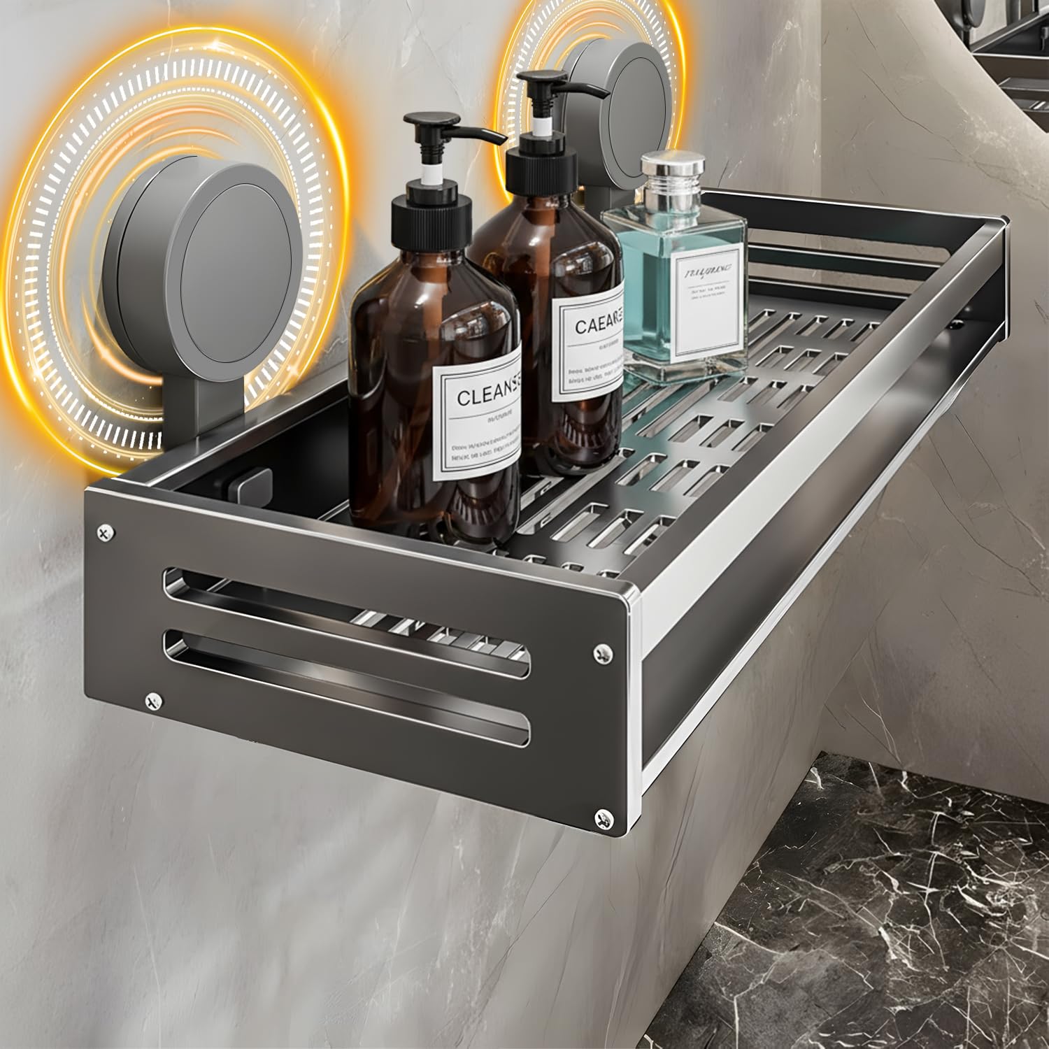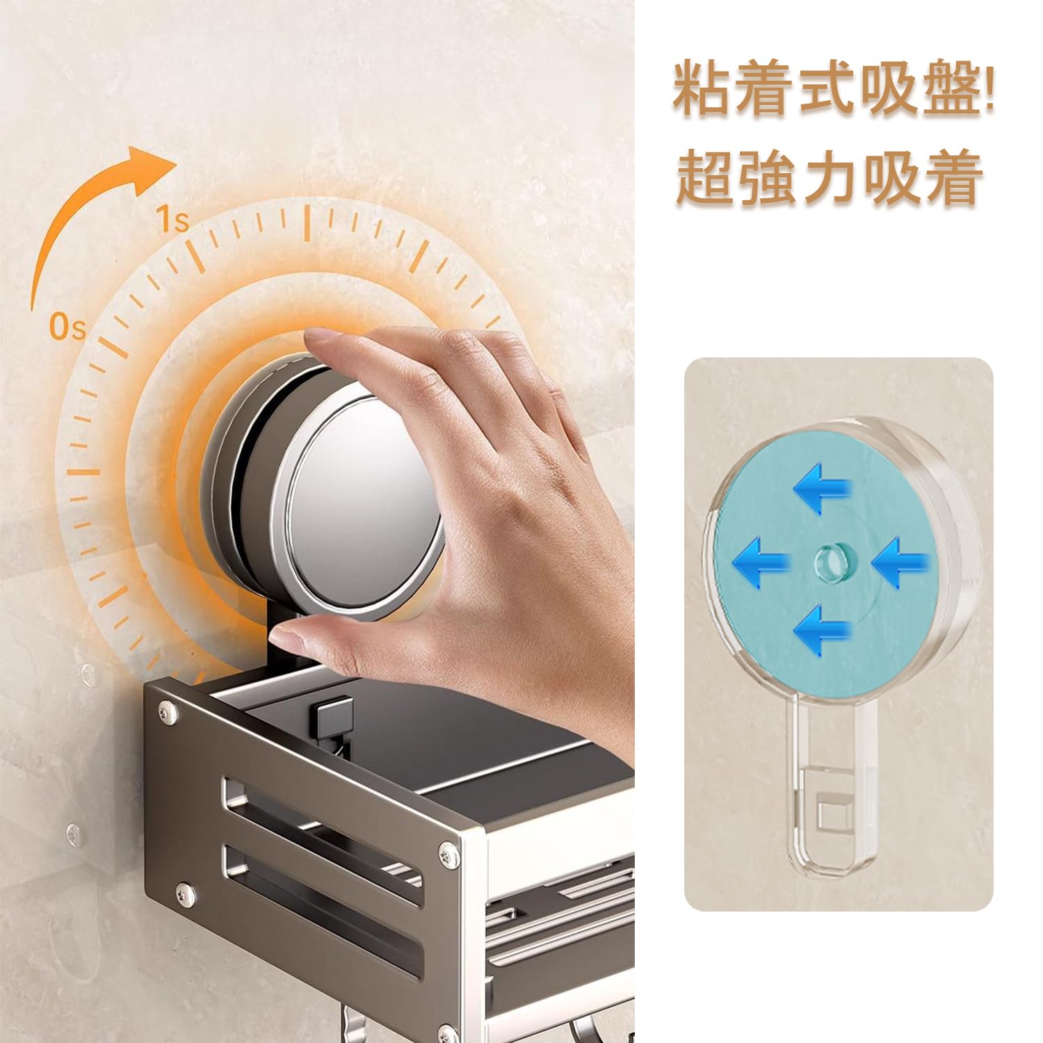 Vinnatsu調味料ラック 吸盤 強力 アルミニウム合金 調味料入れ 吸盤 棚 キッチン収納 浴室ラック 防水防錆 調味料ストッカー 壁掛け 調味料 置き 4個移動式フック 耐荷重10kg (50×13.3×5cm)