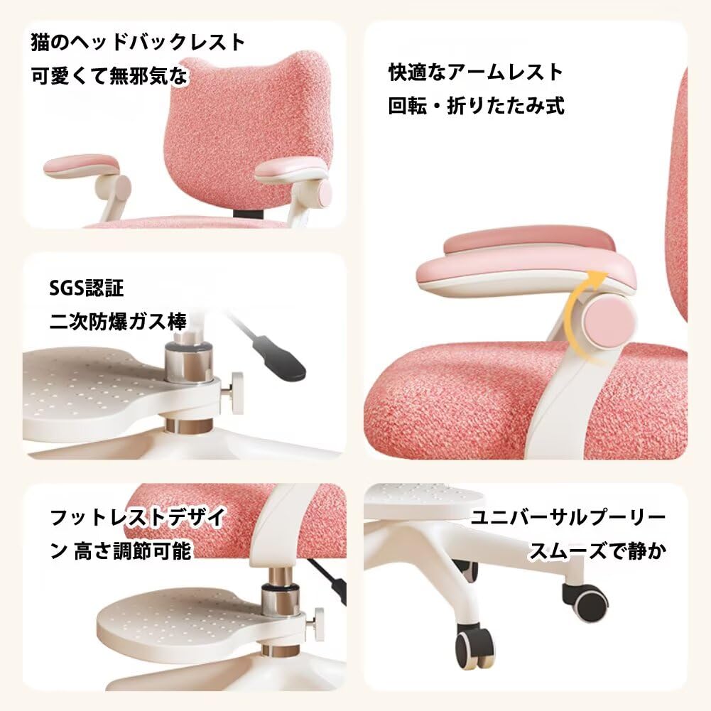 学習椅子 勉強椅子 学習チェア デスクチェア(書桌椅) 子供 小学生 中学生 高中生 高さ調節(座面 40-50cm) 足置き付き(20-25cm 調節) SGS 認証防爆ガススプリング PU 静音キャスター 高反発スポンジ座面 アームレスト収納式 勉強机に適合