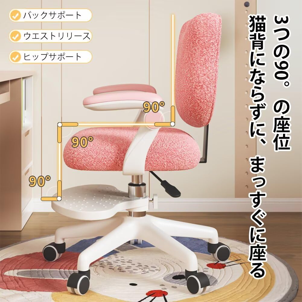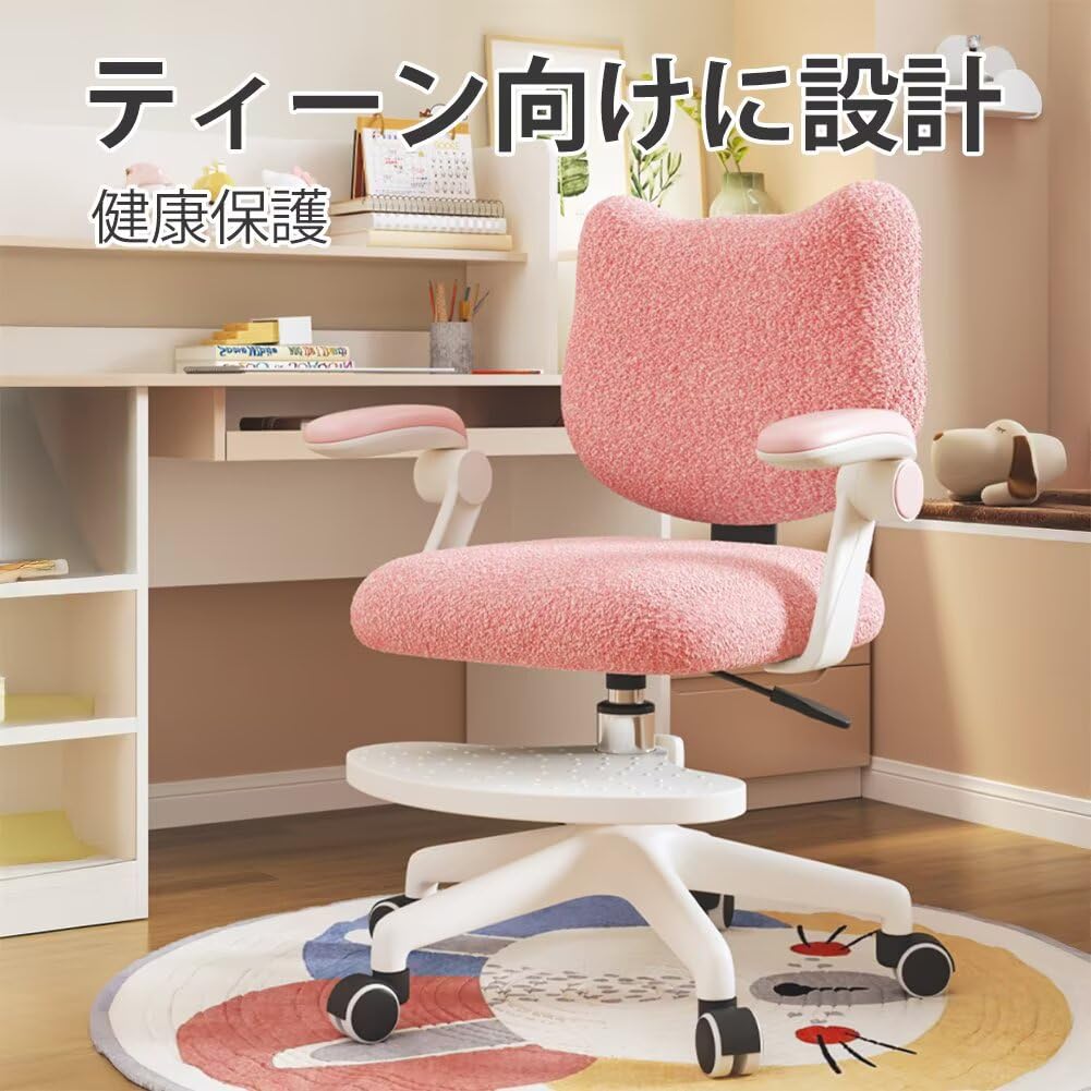 NATURFEN 学習椅子 小学生 高校生 勉強椅子 7°ロッキング機能搭載 疲れない 子供 椅子 8cm厚クッション 高さ&奥行き&足置き調節 イス 子ども用 6〜18歳成長対応 キッズチェア (Pink)