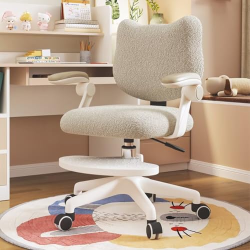 NATURFEN 学習椅子 小学生 高校生 勉強椅子 7°ロッキング機能搭載 疲れない 子供 椅子 8cm厚クッション 高さ&奥行き&足置き調節 イス 子ども用 6〜18歳成長対応 キッズチェア (Beige)