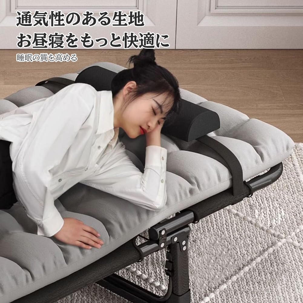 【第二世代!高密度厚手パール綿】折り畳みベッド 4 段階調節 コット 軽量快適 組立不要 ヘッドレスト付き シングルサイズ 滑り止めフットパッド 通気性素材 静電気防止 スチールフレーム 耐荷重 100kg 頑丈長持ち コンパクト収納 サマーベッドリクライニング 安定性 家庭用/アウトドア/オフィス用 防災避難用(56×170cm)