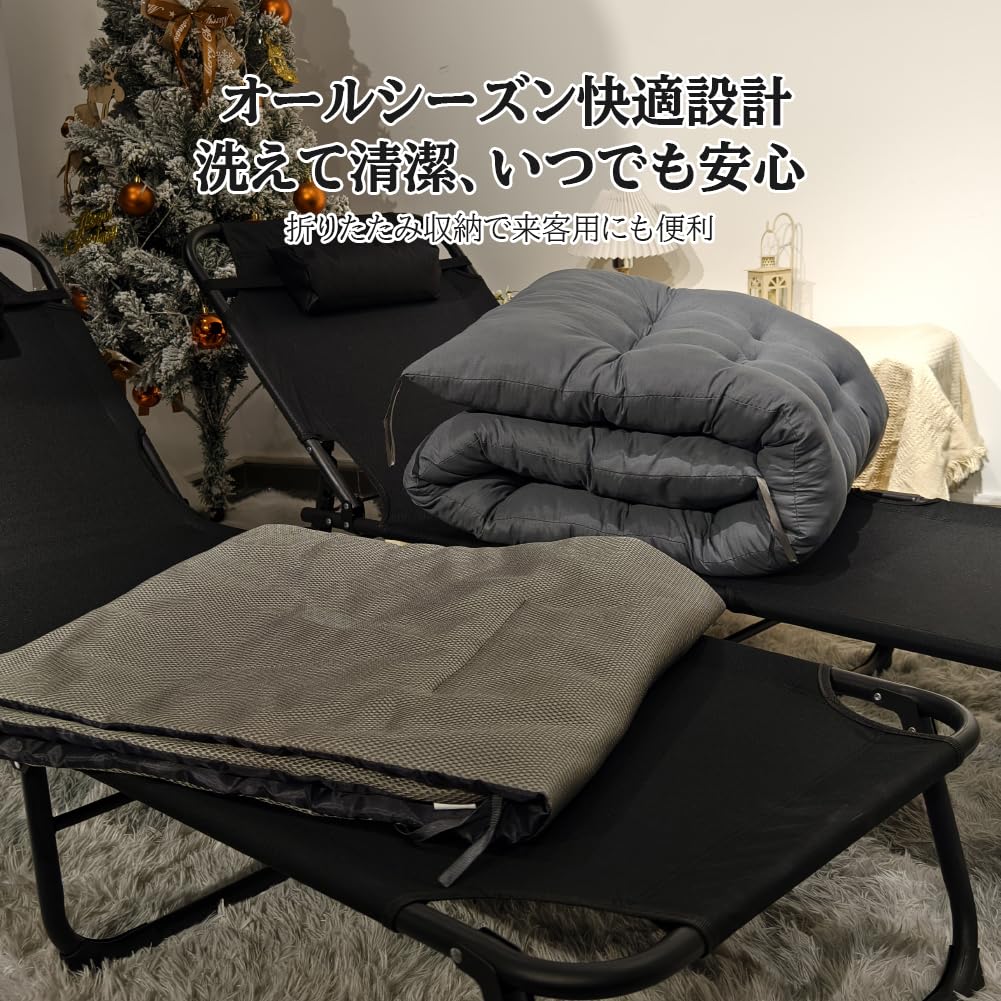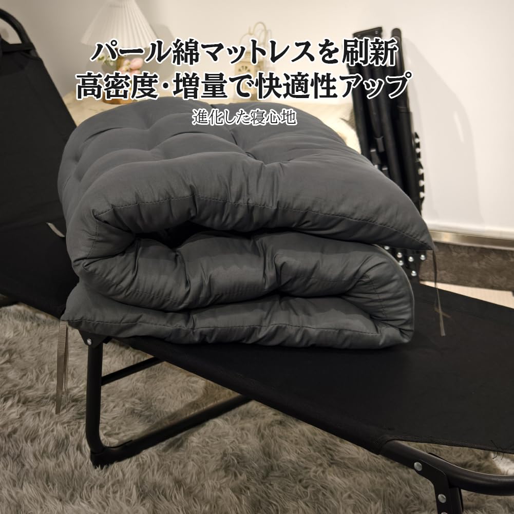 【進化した寝心地!増量パール綿マットレス】 折りたたみベッド 4段階調節可能 コット 組立不要 軽量で快適 シングルサイズ サマーベッド リクライニング ヘッドレスト付き 滑り止めフットパッド 通気性素材・静電気防止 コンパクト収納 簡易ベッド 家庭用/アウトドア/オフィス用 スチールフレーム 頑丈で長持ち シンプルデザイン 耐荷重100kg 安定性 サイズ56×170cm[防災避難用]