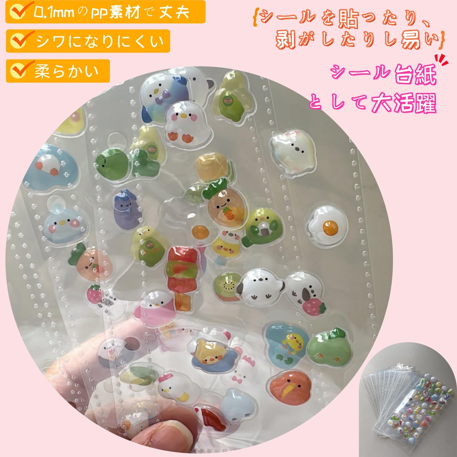 シール帳 プラバン 透明 6穴バインダー A6サイズ大容量,【リフィル×20枚 チャック付きポケット×2枚 シール台紙×4枚】推し活収納 PPシート カードブック 下敷き 剥がせる 剥離紙 カードスリーブ コラージュノート クリア手帳 プリ帳 システム手帳 (単ポケットリフィル20枚)