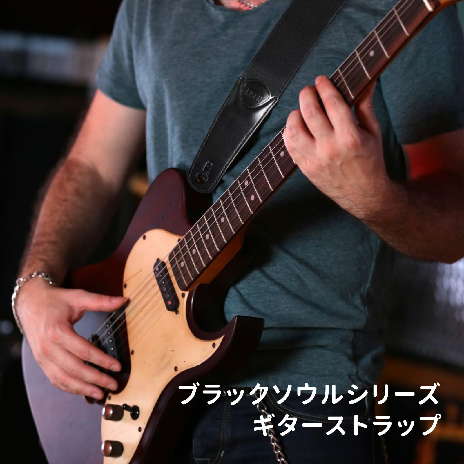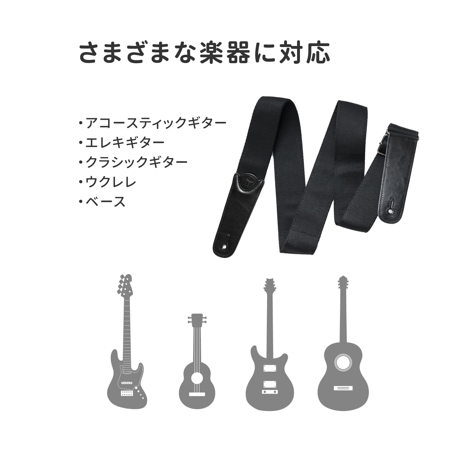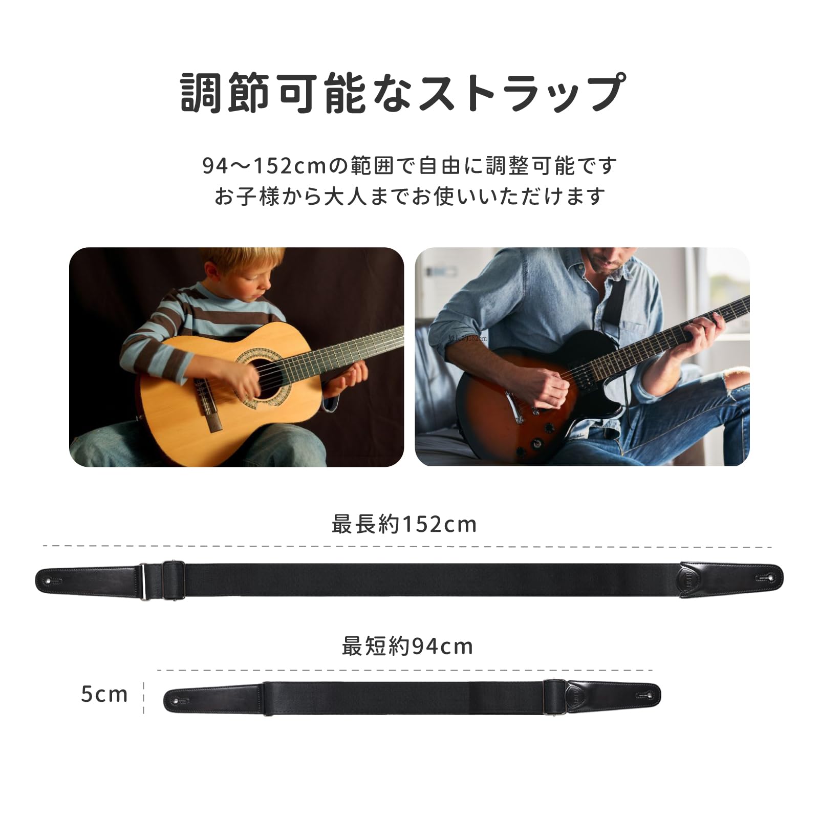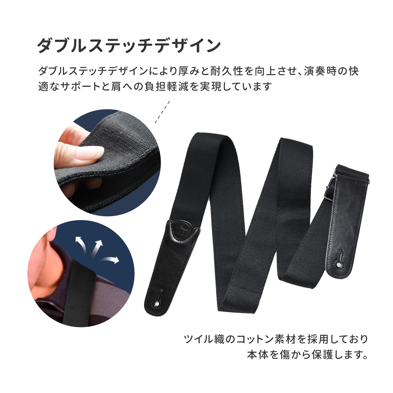 [RISEN LIFE] RS005 ギターストラップ コットンウェビング ピック収納可 ウクレレ・エレキギター・ベース対応 調節可能ストラップ ブラック(セット内容:ピック3枚、ヘッドストラップ、ストラップロック、レザーネックストラップ)