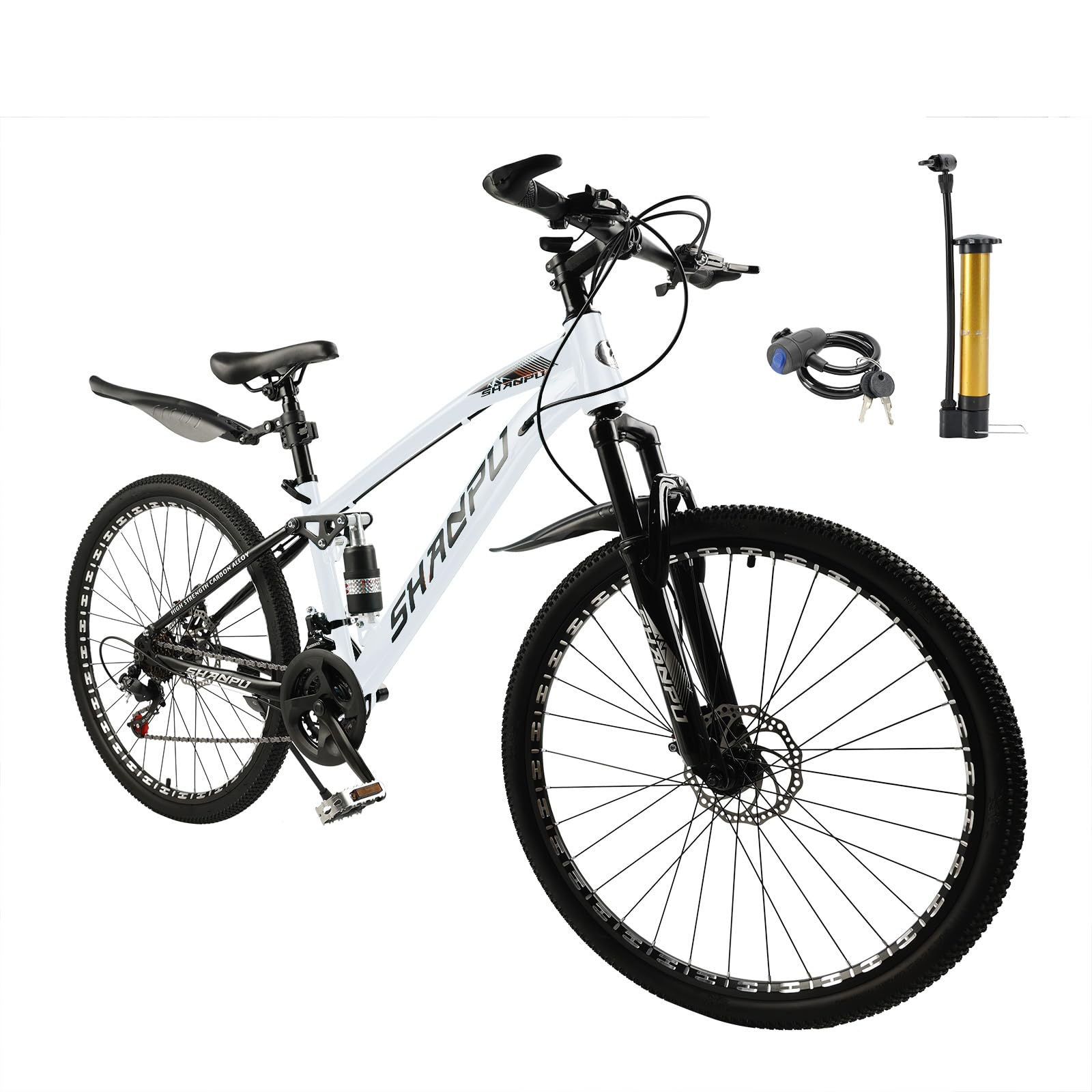 Artudatech マウンテンバイク マウンテンバイク 自転車 ファットバイク 26インチ フルサスマウンテンバイク 27段変速 クロスバイク デュアルディスクブレーキ 高炭素鋼フレーム 自行车 ロックアウト機能付き 自転車 クロスバイク 9段変速チェーン ホワイト