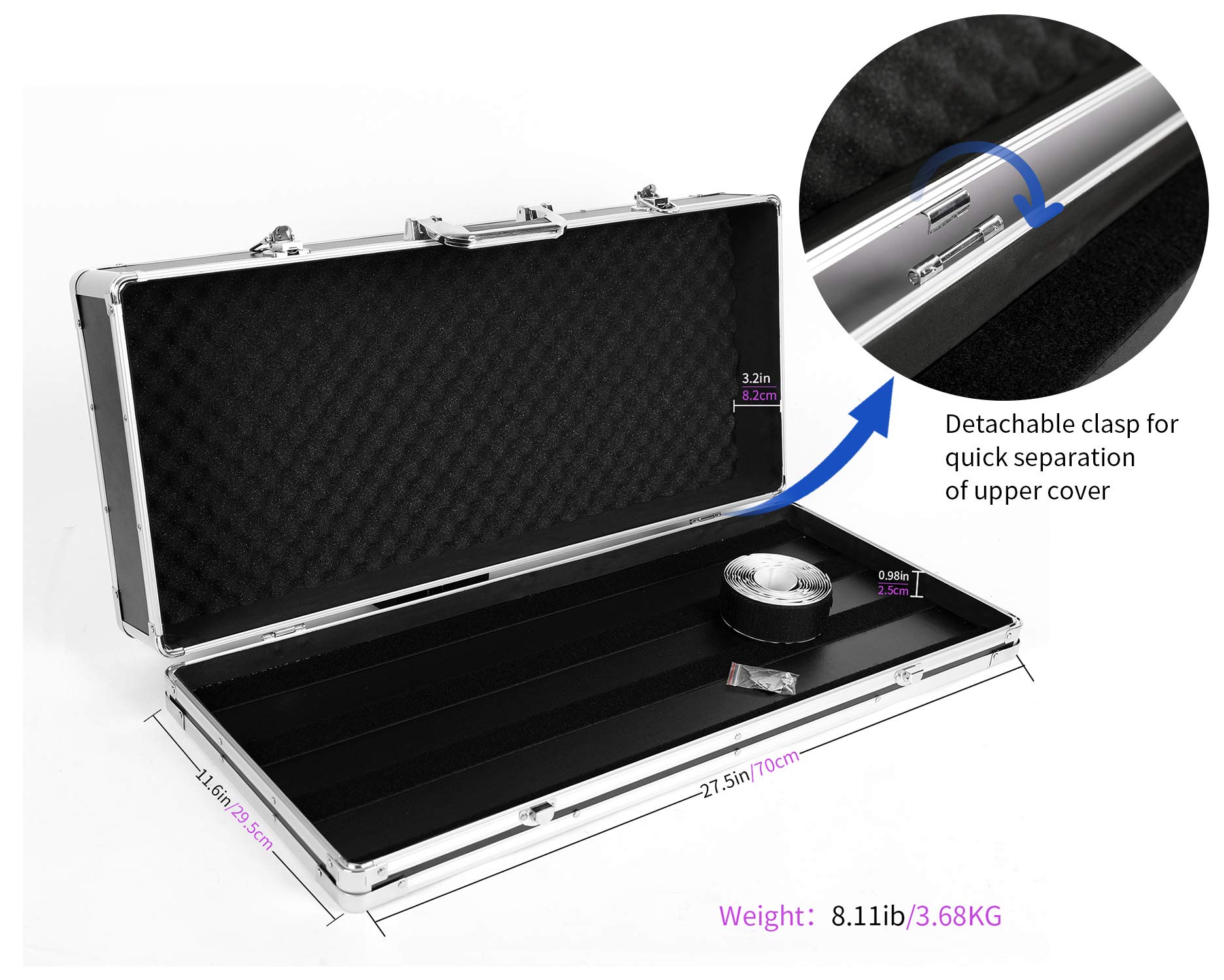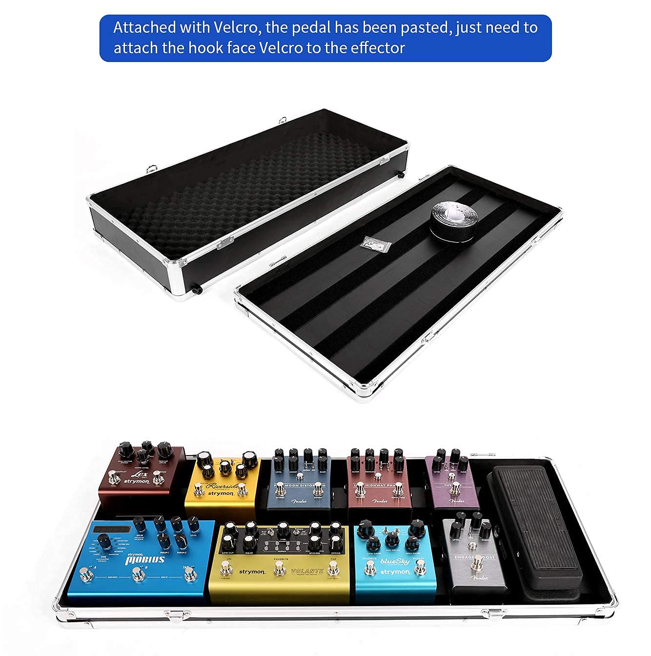 このケースは、家庭での使用やリハーサルに非常に適しています。 重いケースよりもはるかに軽量です。 通常の使用では壊れません。 休息してください。 短距離での持ち運びに適しています。 車のトランクに入れることができます。 飛行中に牽引することはお勧めしません。 激しく扱わないでください。 ベルクロはケースの内側に貼り付けられており、カバーを開けたときに直接使用できます。 とても便利です。 ベルクロの耐荷重は素晴らしいので、落ちない安心感があります。エフェクターペダルを収納して湿気やホコリを防ぐことができます。 本当に必要としている人のために、市場に類似した製品はありません....