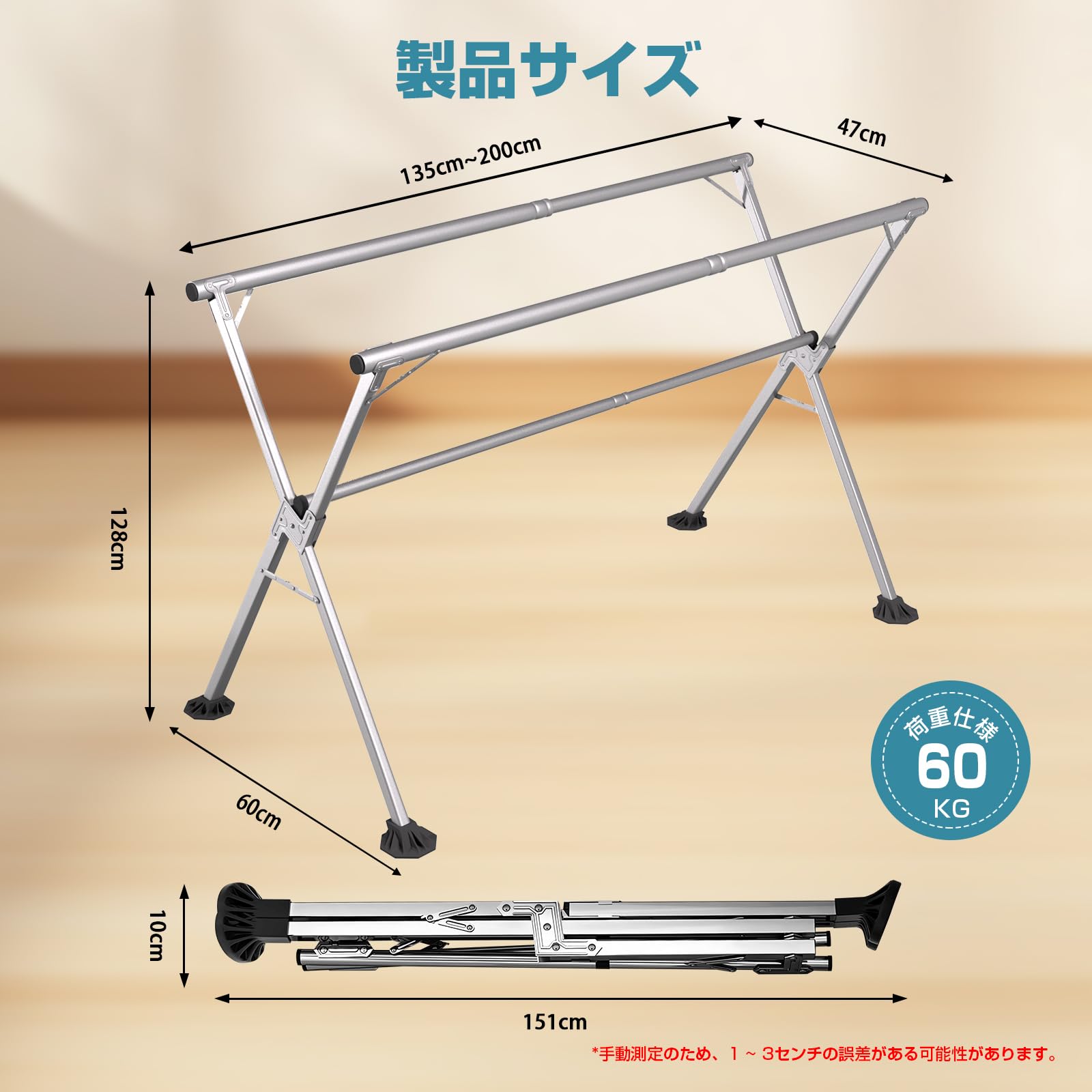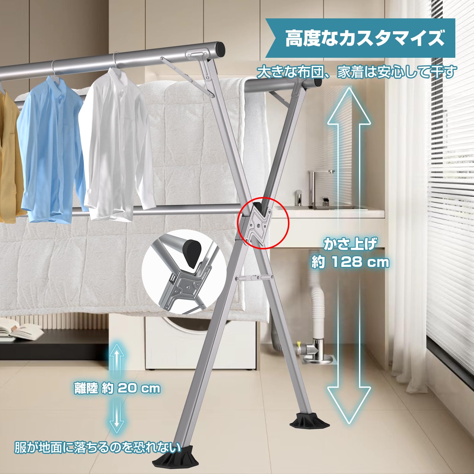 BAOYOUNI 室内物干し 折りたたみ 洗濯物干し ステンレス 部屋干し タオルハンガー 多機能 梅雨 伸縮自在 サビにくい 軽量 コンパクト収納 大容量 組立簡単 工具不要 布団 花粉 新生活 (115-206x82x127-160cm)
