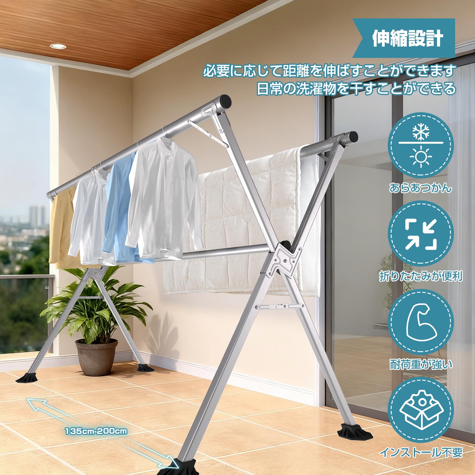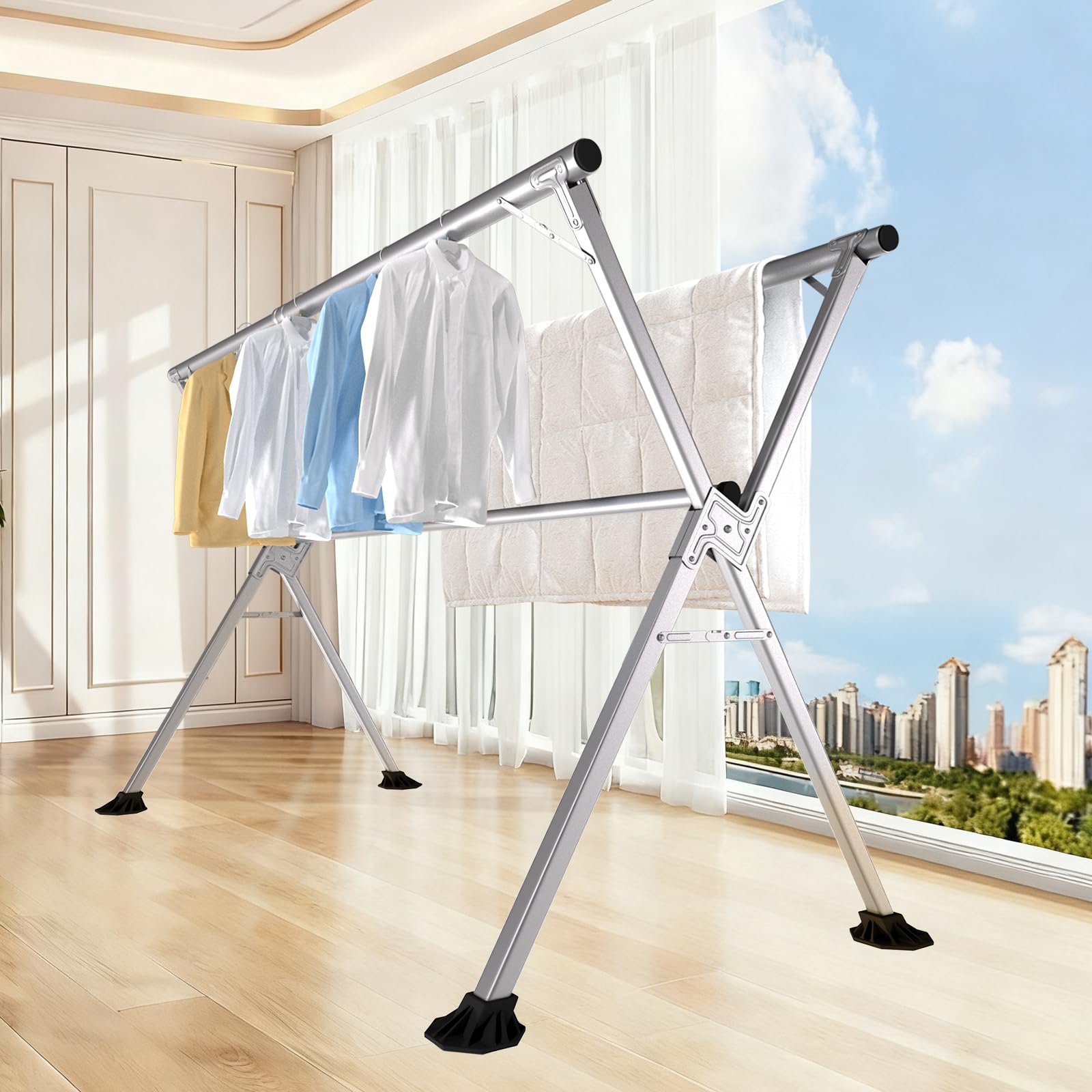 SmartMaster 室内物干し 洗濯物干し 室内 組み立て不要 折り畳み式 物干しスタンド 屋外 おしゃれ コンパクト 大容量 物干しラック 布団干し タオルほしスタンド 洗濯干し 室内物干し X型 部屋 ベランダ 屋内 屋外