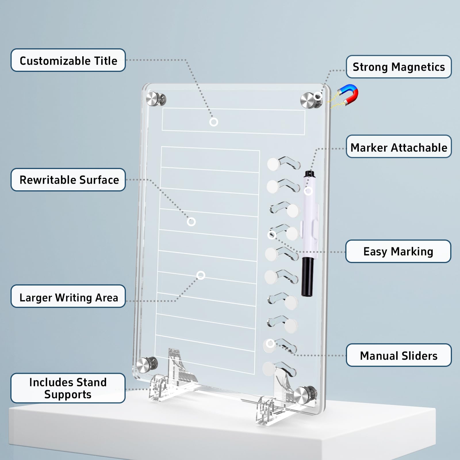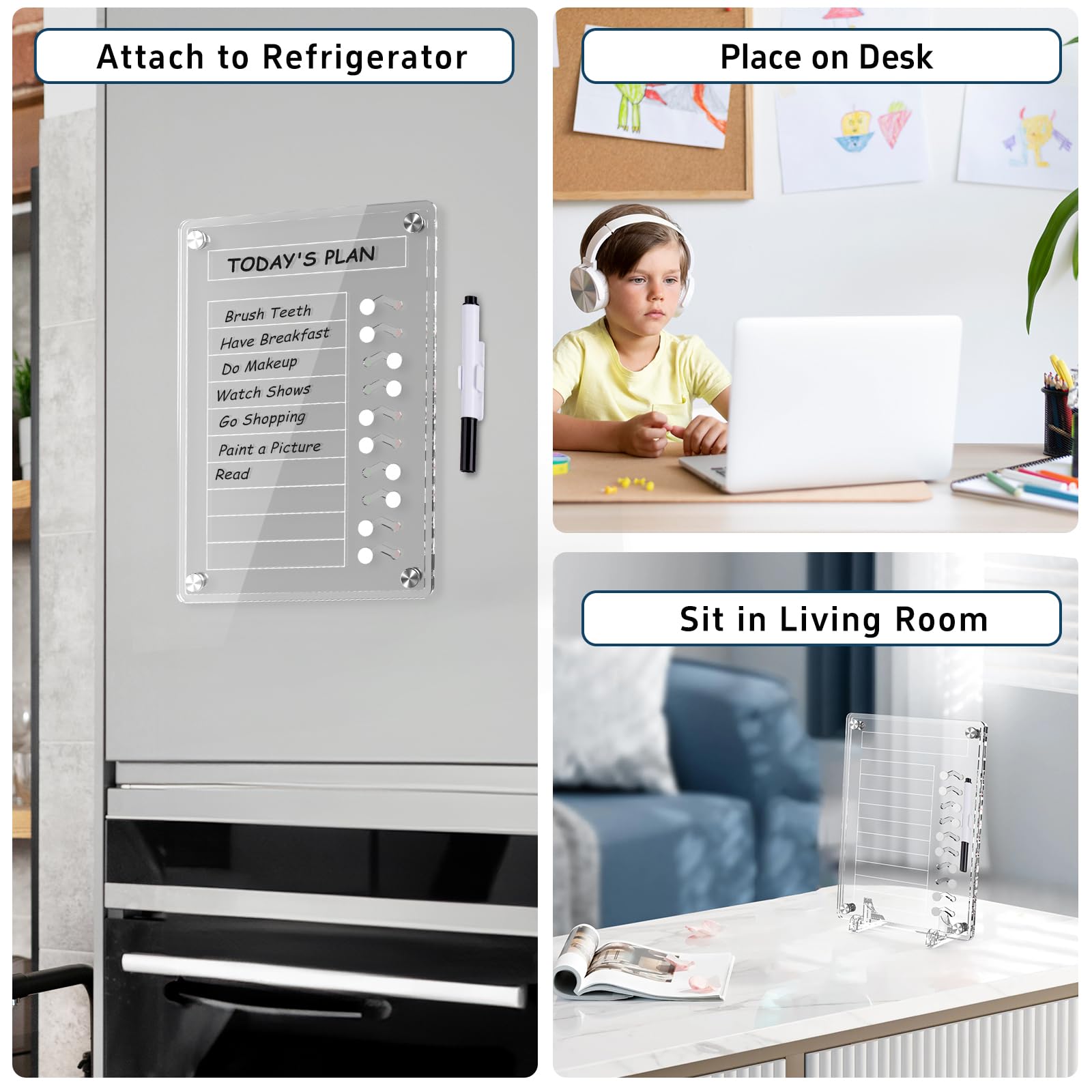 NiHome アクリル製マグネット式 スケジュールボード 計画ボード スライダー付きデスクスタンド 子供と大人向け 多機能家事チャート 冷蔵庫 デスク用 マーカー付きチェックリスト ルーチンチャート